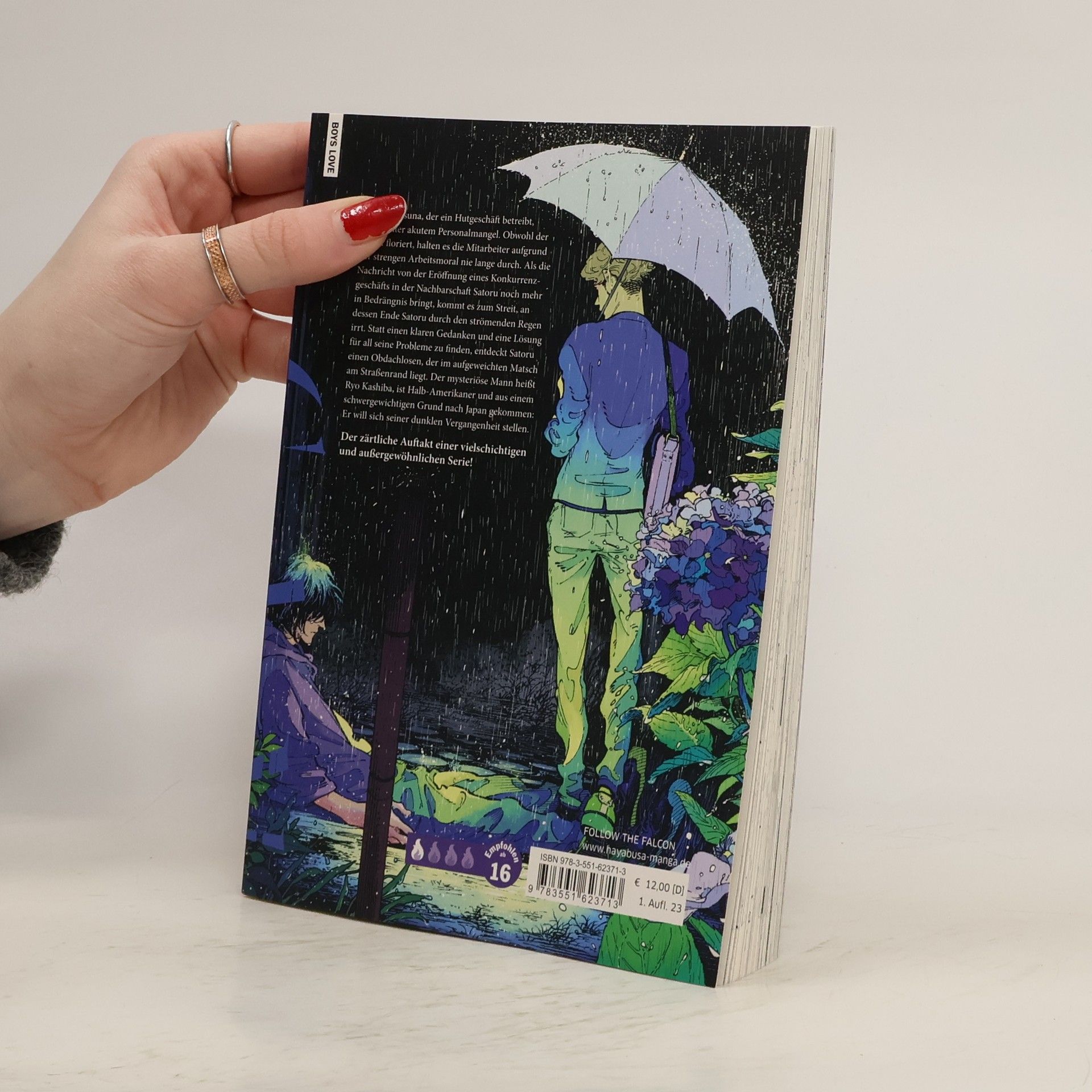 HAYABUSA präsentiert eine exquisite Auswahl der besten Boys-Love-Geschichten. Mit CANIS erreichen wir ein neues Level und sind stolz auf die Lizensierung dieses Meisterwerks. Gefühlvoll und tiefgründig katapultiert sich die Serie aus den bestehenden Boys-Love-Klischees und erfindet das Genre neu. Der zärtliche Auftakt -Dear Mr. Rain- erzählt von Satoru Kutsuna, der ein Hutgeschäft betreibt und unter akutem Personalmangel leidet. Trotz des florierenden Geschäfts halten es die Mitarbeiter aufgrund der strengen Arbeitsmoral nicht lange aus. Als ein Konkurrenzgeschäft eröffnet, gerät Satoru in eine noch größere Krise und streitet sich, bevor er durch den strömenden Regen irrt. Statt Lösungen zu finden, entdeckt er einen Obdachlosen, Ryo Kashiba, der im Matsch am Straßenrand liegt. Ryo, ein Halb-Amerikaner, ist nach Japan gekommen, um sich seiner dunklen Vergangenheit zu stellen. Hinter dem Künstlernamen ZAKK verbirgt sich Hachi Ishie, die Erfolgsautorin von Cruella: Der Manga - Black, White & Red. In CANIS experimentiert die talentierte Zeichnerin mit verschiedenen Stilrichtungen und schafft ein einzigartiges Gesamtkunstwerk. Weitere Informationen: Spice-Level: 1 von 4 Flammen. Erotik spielt eine kleinere Rolle, ideal für Einsteiger*innen.