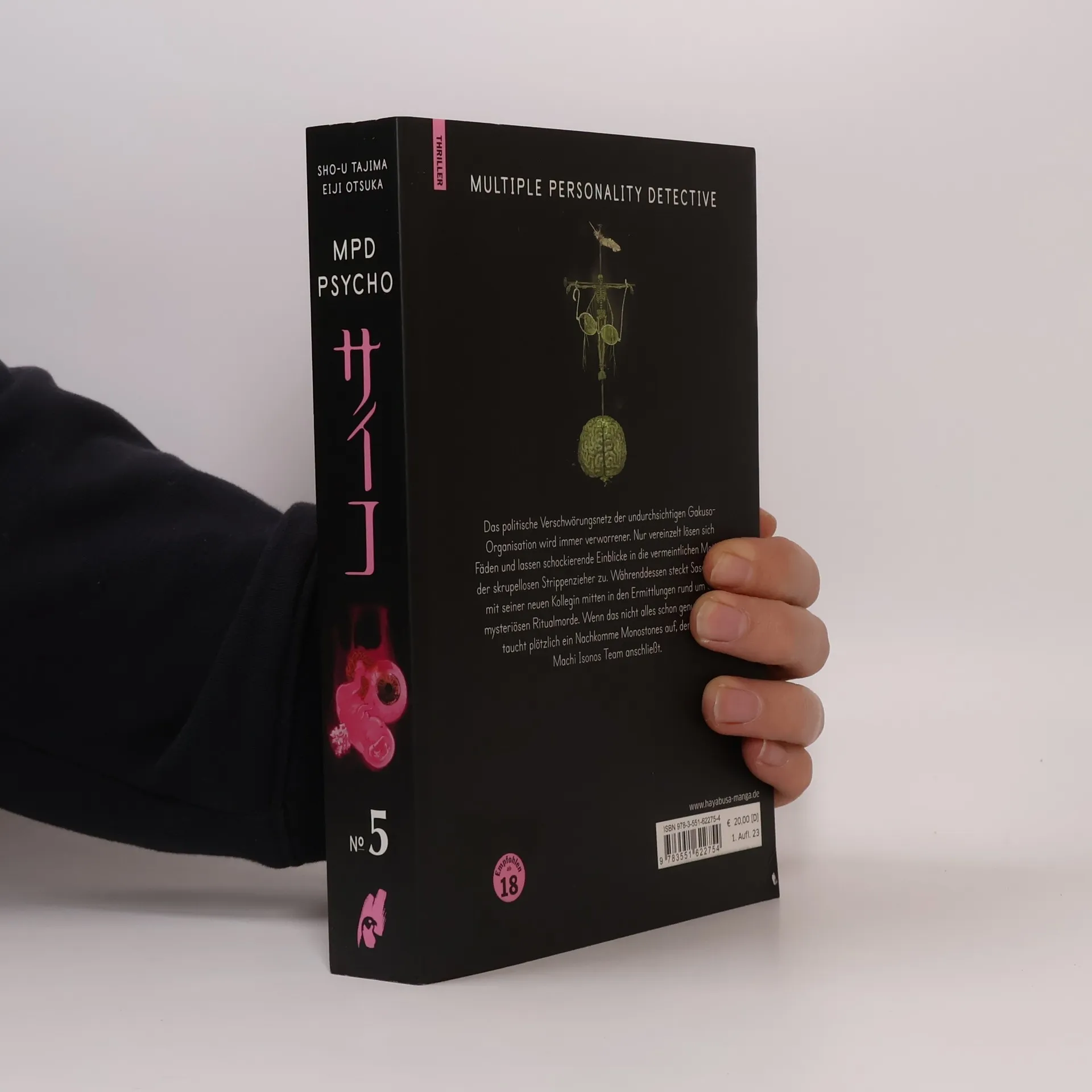 Ein (Alb)Traum wird wahr! Lange hat die deutsche Manga-Szene auf die erste deutschsprachige Ausgabe dieses zeitlosen Ausnahmewerks warten müssen. Endlich erscheint der schockierende Klassiker auf Deutsch! Yosuke Kobayashi, ein Polizist, ermittelt in einer bizarren Mordserie und wird persönlich in den Fall involviert, was zu einer dissoziativen Identitätsstörung führt. Die Jagd nach dem Serienkiller endet katastrophal: Yosuke wird wegen Mordes verurteilt und landet im Gefängnis, bleibt jedoch der Mordkommission als Profiler erhalten. In Tokyo wütet eine wahre „Serienmörder-Epidemie“ mit äußerst kreativen und brutalen Tätern. Trotz ihrer Unterschiede haben alle eine absonderliche Gemeinsamkeit: einen mysteriösen Strichcode im linken Auge. MPD Psycho zieht die Leser*innen in einen albtraumhaften Strudel aus eigenartigen Protagonisten und brutalen Schockmomenten. Sho-u Tajimas realistischer Zeichenstil macht die Geschichte zu einer unvergesslichen Herausforderung. Der erste Band dieses umstrittenen Psychothrillers erschien 1997, brillant geschrieben von Eiji Otsuka und mit gnadenlosem Strich von Sho-u Tajima umgesetzt. 2016 endet die Serie mit insgesamt 24 Bänden und erhält nun ihre erste ungeschnittene und unzensierte deutsche Umsetzung in 12 hochwertigen Doppelbänden.