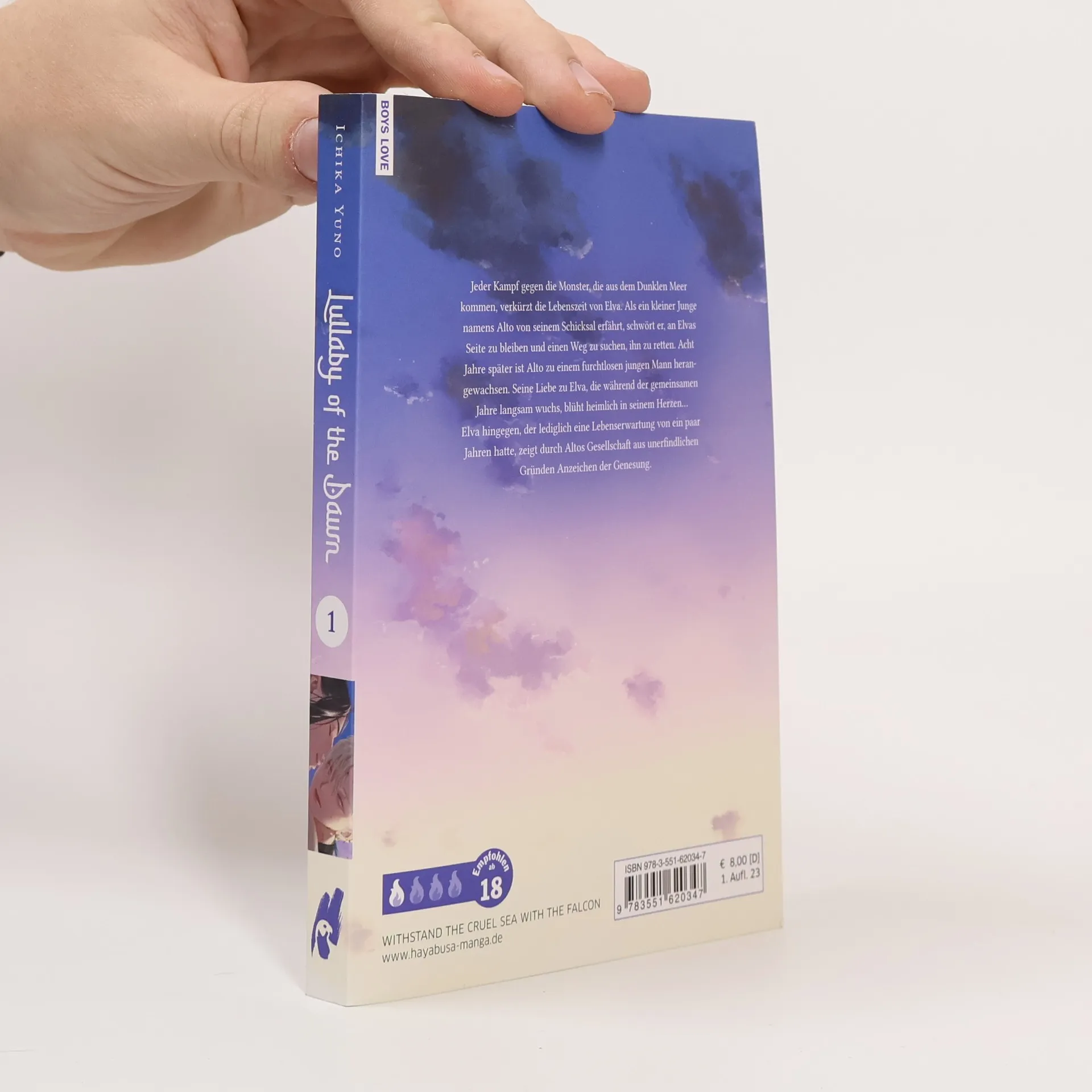 Mit SNS Card zum Sammeln und Kreativsein in der 1. Auflage! Ein verfluchtes Leben und eine Liebe, die alles verändert... Jeder Kampf gegen die Monster, die aus dem Dunklen Meer kommen, verkürzt die Lebenszeit von Elva. Als ein kleiner Junge namens Alto von seinem Schicksal erfährt, schwört er, an Elvas Seite zu bleiben und einen Weg zu suchen, ihn zu retten. Acht Jahre später ist Alto zu einem furchtlosen jungen Mann herangewachsen. Seine Liebe zu Elva, die während der gemeinsamen Jahre langsam wuchs, blüht heimlich in seinem Herzen… Elva hingegen, der lediglich eine Lebenserwartung von ein paar Jahren hatte, zeigt durch Altos Gesellschaft aus unerfindlichen Gründen Anzeichen der Genesung. Weitere Informationen: Spice-Level: 1 von 4 Flammen. Erotik spielt in diesem Boys-Love-Titel eine kleinere Rolle. Ideal für Einsteiger*innen. Die Serie gilt als noch nicht abgeschlossen Ein gefühlvoller, epischer Boys-Love-Manga in einem facettenreichen Fantasy-Setting.
