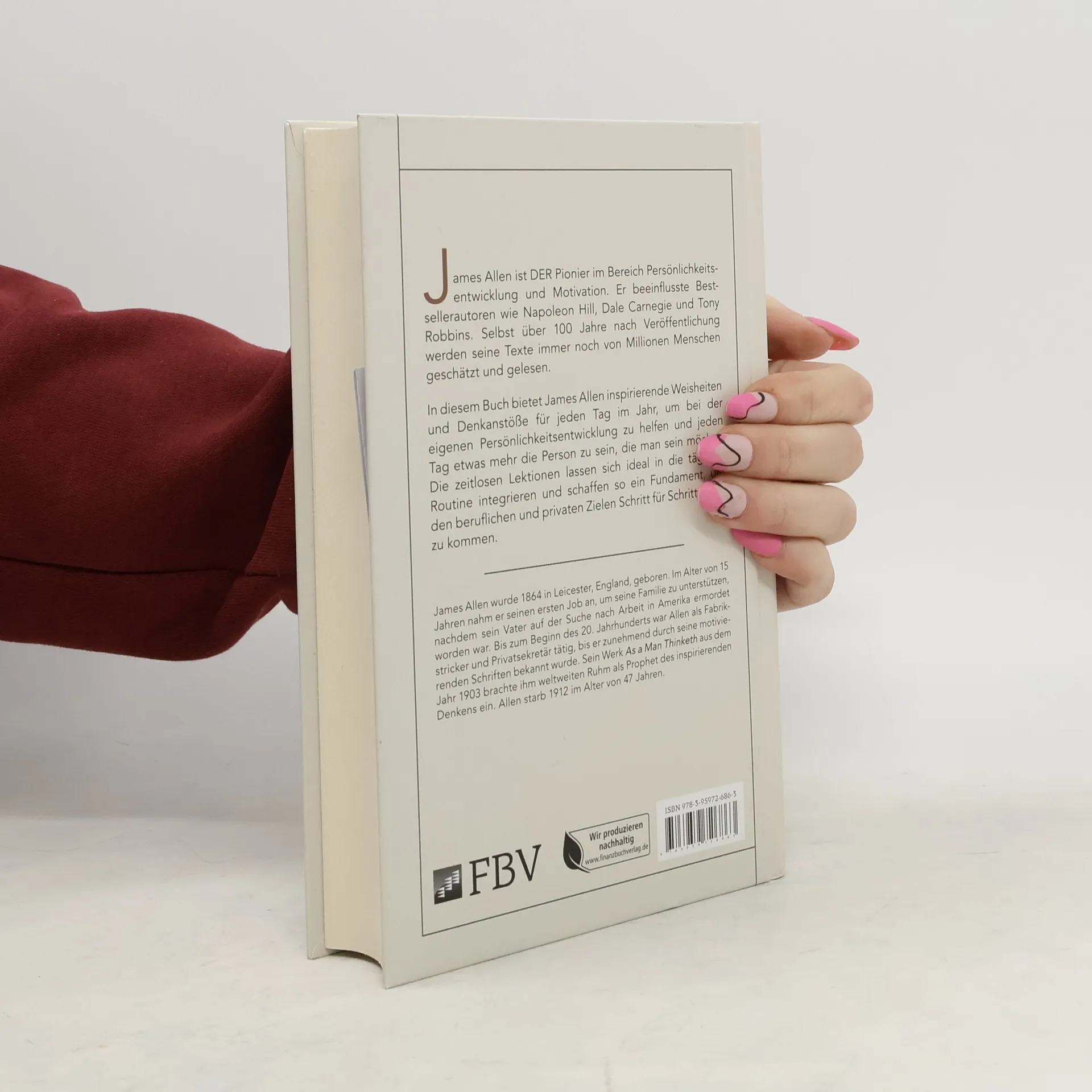 James Allen ist DER Pionier im Bereich Persönlichkeitsentwicklung und Motivation. Er beeinflusste Bestsellerautoren wie Napoleon Hill, Dale Carnegie und Tony Robbins. Selbst über 100 Jahre nach Veröffentlichung werden seine Texte immer noch von Millionen Menschen geschätzt und gelesen. In diesem Buch bietet James Allen inspirierende Weisheiten und Denkanstöße für jeden Tag im Jahr, um bei der eigenen Persönlichkeitsentwicklung zu helfen und jeden Tag etwas mehr die Person zu sein, die man sein möchte. Die zeitlosen Lektionen lassen sich ideal in die tägliche Routine integrieren und schaffen so ein Fundament, um den beruflichen und privaten Zielen Schritt für Schritt näher zu kommen.