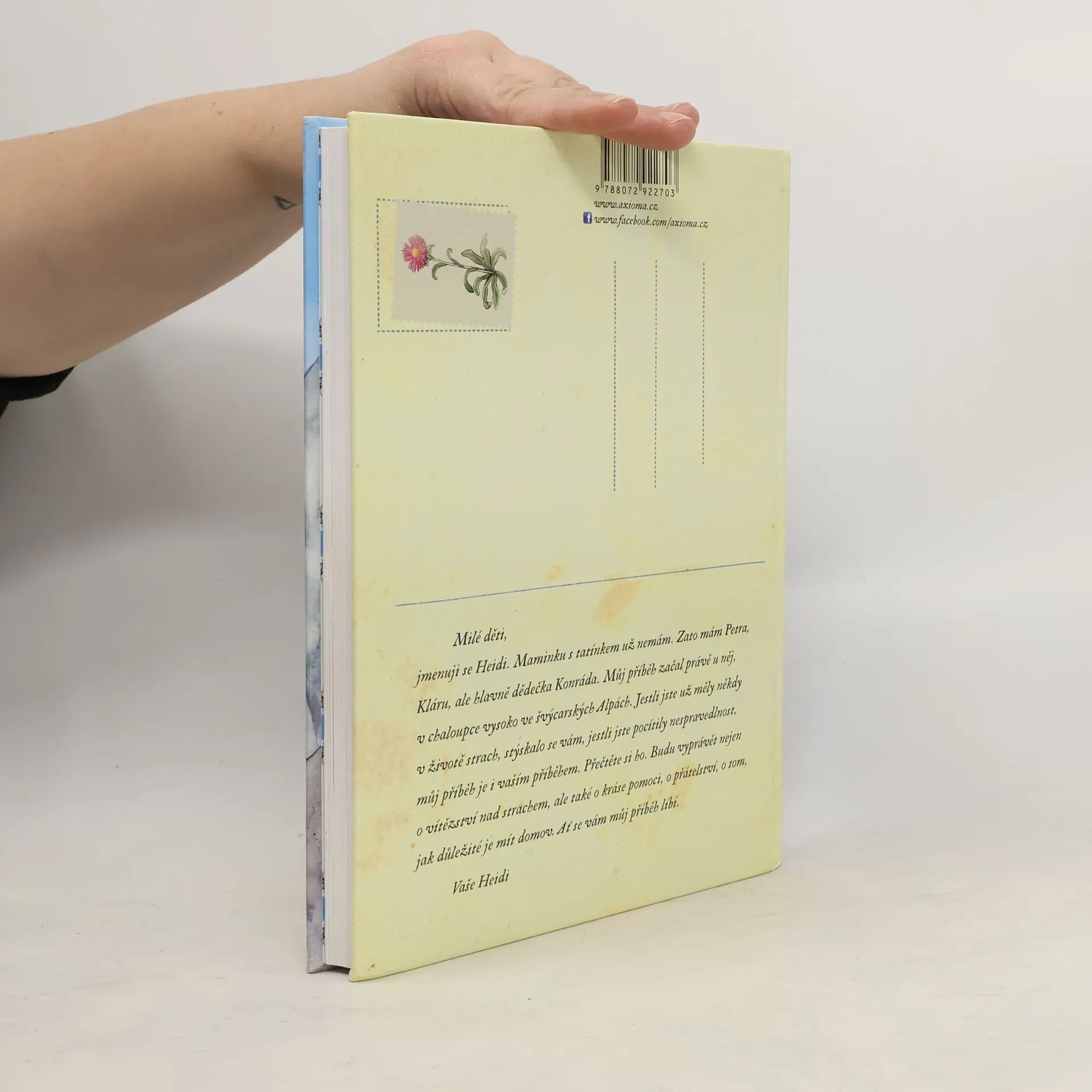 Jmenuje se Heidi. Maminku s tatínkem už nemá. Zato má Petra, Kláru, ale hlavně dědečka Konráda. Její příběh začal právě u něj, v chaloupce vysoko ve švýcarských Alpách. Vypráví o vítězství nad strachem, ale také o kráse pomoci, o přátelství, o tom, jak důležité je mít domov. Světoznámý příběh malého děvčátka převyprávěný Bohumilem Říhou, tentokrát v úplně novém vydání s kouzelnými ilustracemi JarmilyMarešové.