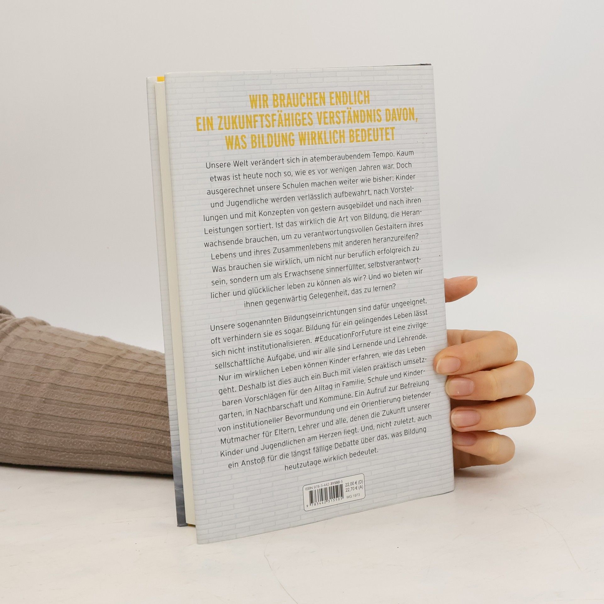 Eine gute Bildung ist entscheidend für die Zukunft unserer Kinder und Jugendlichen. Das ist klar. Aber was genau ist gute Bildung, vor allem im digitalen Zeitalter, das von globalen Umbrüchen geprägt ist und in dem sich die Definition von Arbeit massiv wandelt? Was brauchen unsere Jüngsten von uns, damit sie sich Wissen und Können aneignen und gleichzeitig Orientierung im Leben finden können? Wie lernen sie, wie das Leben und Zusammenleben im 21. Jahrhundert wirklich gelingt? Unsere Bildungseinrichtungen kriegen das nicht allein hin, verhindern es oft sogar. Dafür braucht es jetzt uns alle, die ganze Zivilgesellschaft. #Education For Future ist ein Buch voller nutzbarer Antworten für den Alltag in Familie, Schule und Kindergarten, Nachbarschaft, Kommune und Co. Ein Aufruf zur Emanzipation. Und ein haltgebender Mutmacher für Eltern, Lehrer und alle, denen die Zukunft der jungen Generation am Herzen liegt.