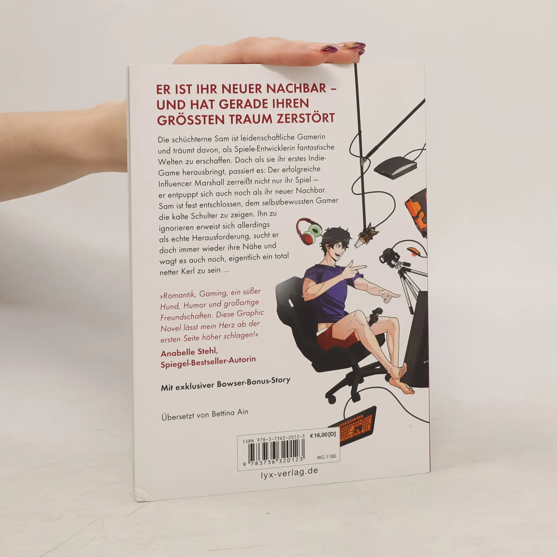 Er ist ihr neuer Nachbar - und hat gerade ihren größten Traum zerstört Die schüchterne Sam ist leidenschaftliche Gamerin und träumt davon, als Spiele-Entwicklerin fantastische Welten zu erschaffen. Doch als sie ihr erstes Indie-Game herausbringt, passiert es: Der erfolgreiche Influencer Marshall zerreißt nicht nur ihr Spiel - er entpuppt sich auch noch als ihr neuer Nachbar. Sam ist fest entschlossen, dem selbstbewussten Gamer die kalte Schulter zu zeigen. Ihn zu ignorieren erweist sich allerdings als echte Herausforderung, sucht er doch immer wieder ihre Nähe und wagt es auch noch, eigentlich ein total netter Kerl zu sein ... »Romantik, Gaming, ein süßer Hund, Humor und großartige Freundschaften. Diese Graphic Novel lässt mein Herz ab der ersten Seite höher schlagen!« ANABELLE STEHL , SPIEGEL -Bestseller-Autorin Teil 1 der LET'S-PLAY -Reihe