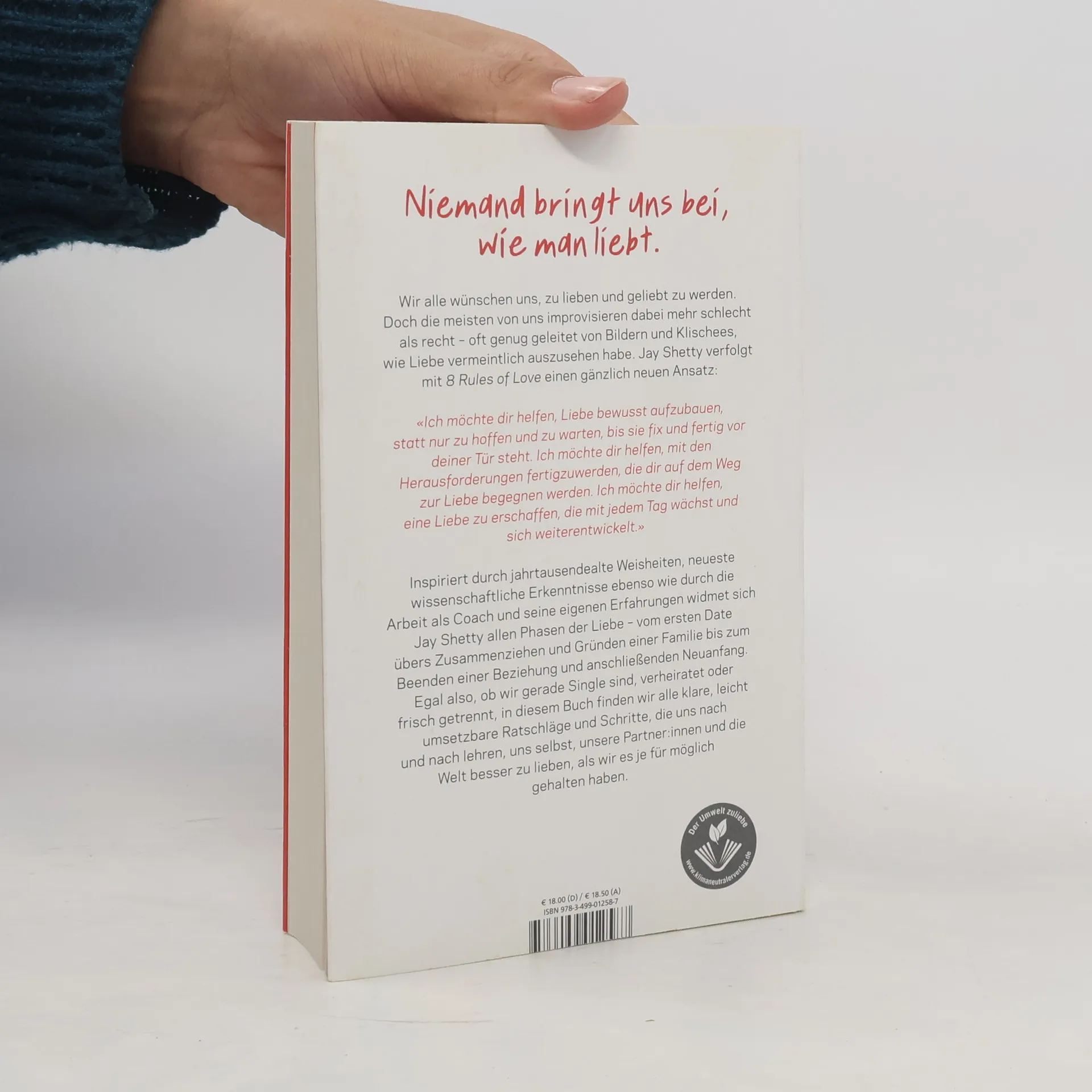Ein hochmoderner Ratgeber über die Liebe in all ihren Facetten – ein Thema für die Ewigkeit Niemand bringt uns bei, wie die Liebe geht. Romantische Filme, Serien, Bücher und Lieder beeinflussen zwar unser Denken und Fühlen, doch oft genug stellen wir fest: Wir haben eigentlich keine Ahnung. Bis jetzt. Frei von Überhöhung und Klischees zeigt uns Jay Shetty einen Weg auf, wie wir unsere Gefühle besser verstehen und nachhaltiger lieben. Basierend auf alten Weisheiten ebenso wie neuesten psychologischen Studien erläutert er, wie wir Liebe finden und pflegen und auch nach ihrem Ende weitermachen können. In seinem umfassenden Ratgeber widmet sich Jay Shetty der Liebe in all ihren Facetten: von der Selbstliebe über erste Dates, das Zusammenziehen und Gründen einer Familie bis hin zum Beenden einer Beziehung und dem Neuanfang nach gescheiterter Liebe. In seinen 8 Rules of Love finden wir für jeden Beziehungsstatus den richtigen Rat und lernen nach und nach, uns selbst, unsere Partner: innen und die Welt besser zu lieben, als wir je für möglich gehalten haben.