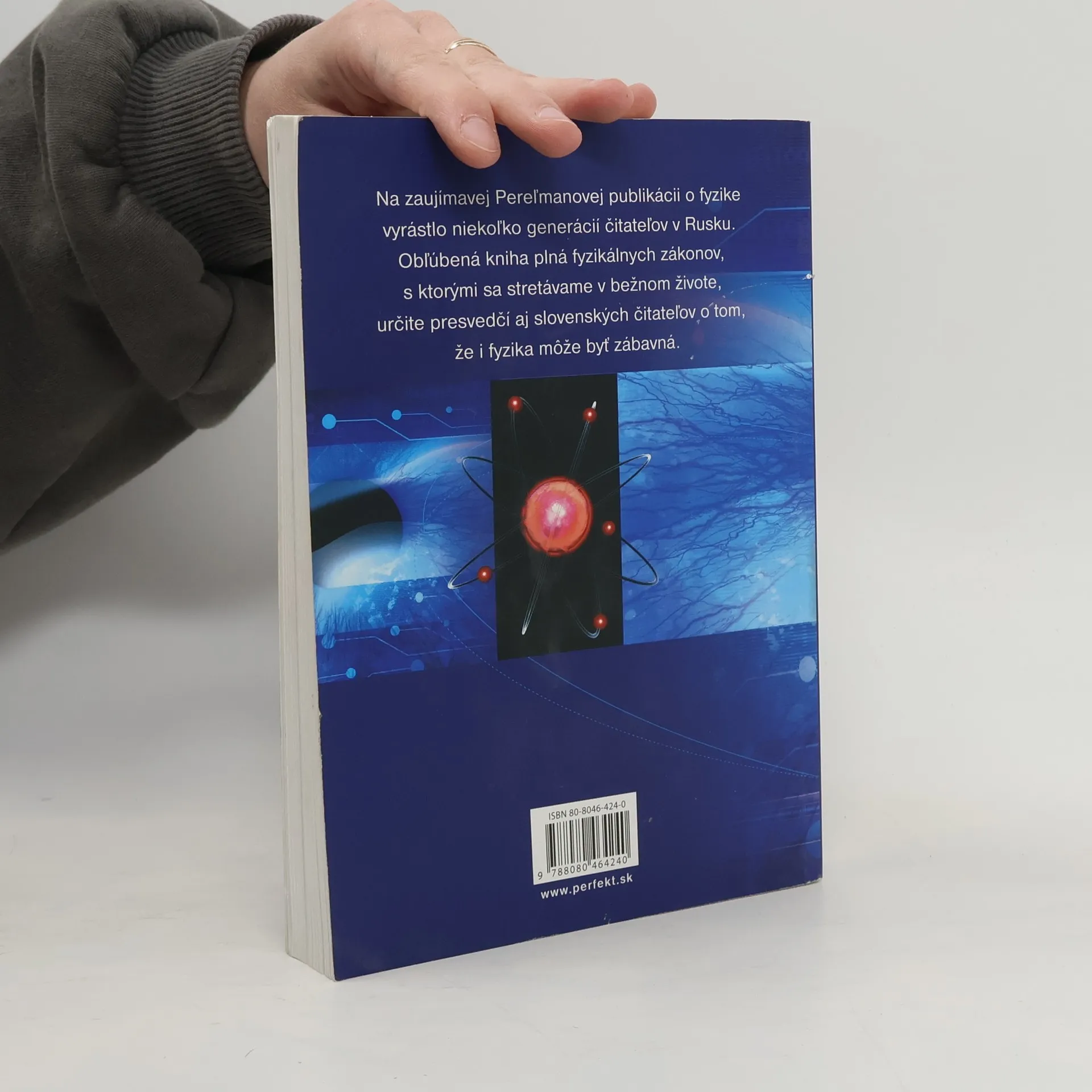 Na zaujímavej Pereľmanovej publikácii o fyzike vyrástlo niekoľko generácii čitateľov v Rusku . Obľúbená kniha plná fyzikálnych zákonov , s ktorými sa stretávame v bežnom živote , určite presvedčí aj slovenských čitateľov o tom , že i fyzika môže byť zábavná . Kapitoly: Rýchlosť, skladanie pohybov, Tiaž, páka, tlak, Odpor prostredia, Otáčavý pohyb, perpetuum mobile, Vlastnosti kvapalín a plynov, Tepelné javy, Svetelné lúče, Odraz a lom svetla, Pozeranie jedným okom a dvomi očami, Zvuk a sluch. Prvé vydanie.