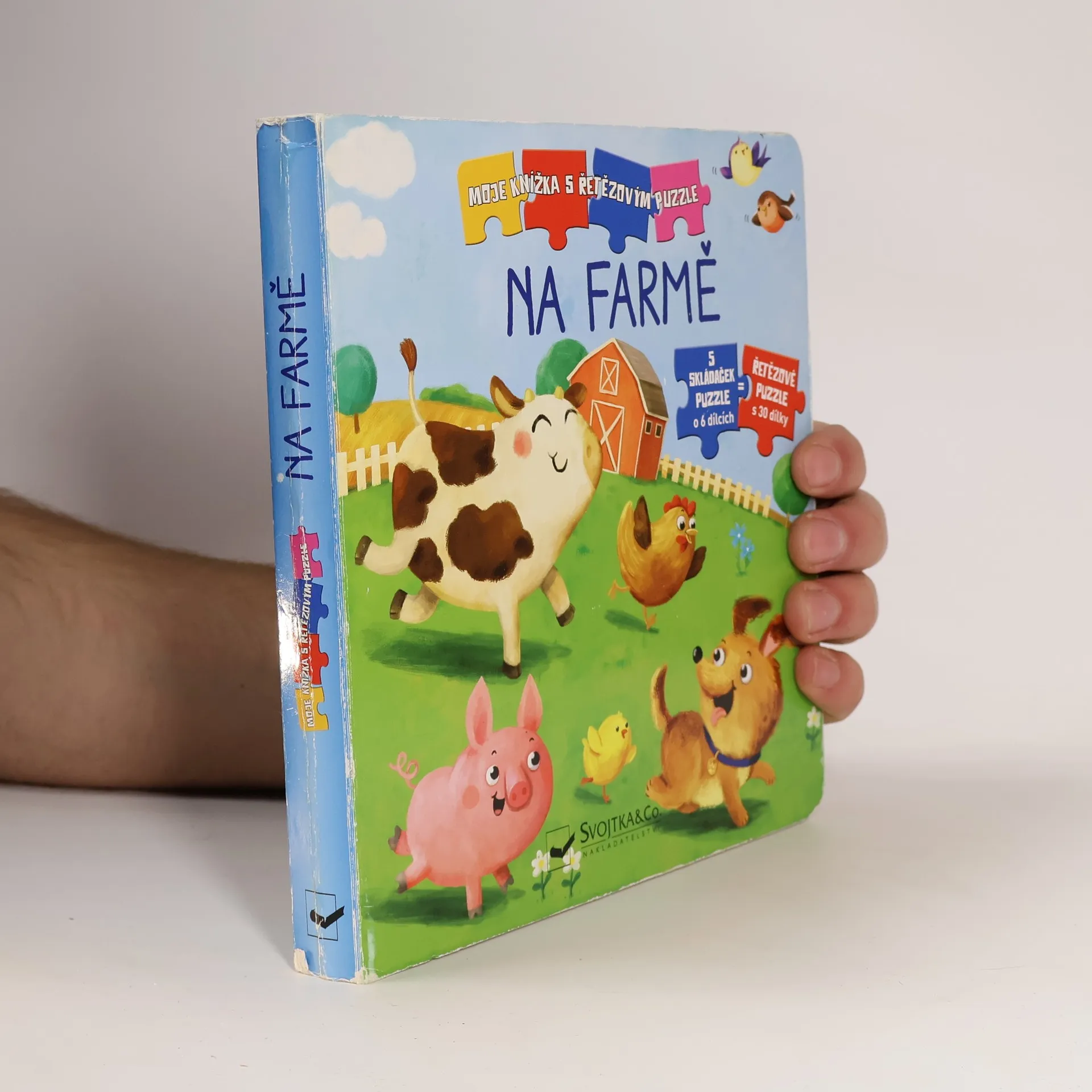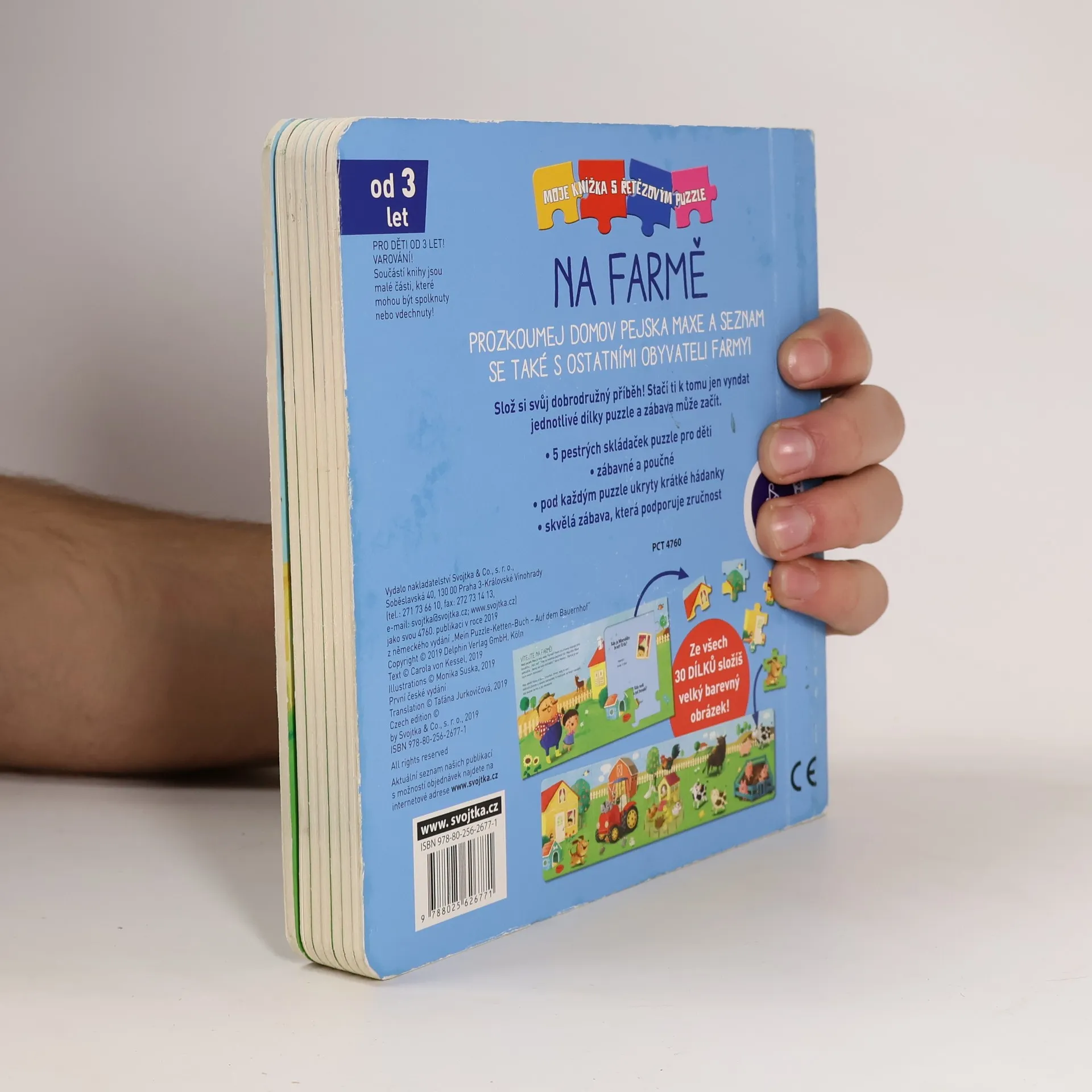Prozkoumej domov pejska Maxe a seznam se také s dalšími obyvateli farmy. U toho můžeš skládat puzzle, které dohromady tvoří jeden velký obrázek!Pět menších skládaček o šesti dílcích se dá spojit do jednoho velkého, 30dílkového puzzle. Pod každou skládačkou se skrývají hádanky a otázky k příběhu pejska Maxe. Spolu s ním a dalšími zvířátky z farmy mohou zvídavé děti prozkoumávat statek. Skvělá zábava, která podporuje zručnost, může začít!