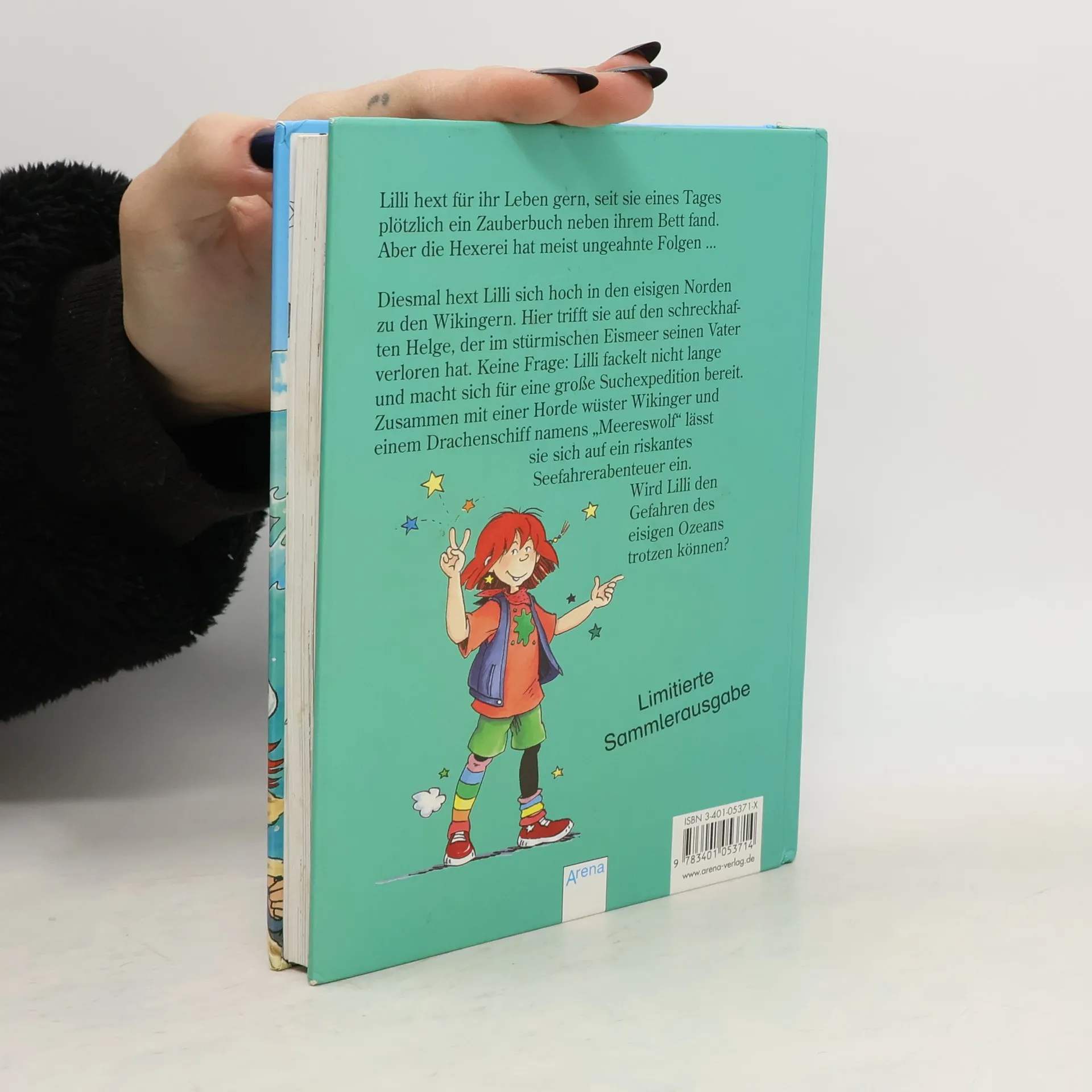 Lilli hext für ihr Leben gern, seit sie eines Tages plötzlich ein Zauberbuch neben ihrem Bett fand. Diesmal hext Lilli sich hoch in den eisigen Norden zu den Wikingern. Hier trifft sie auf den schreckhaften Helge, der im stürmichen Eismeer seinen Vater verloren hat. Keine Frage: Lilli fackelt nicht lange und macht sich für eine große Suchexpedition bereit. Zusammen mit einer Horde wüster Wikinger und einem Drachenschiff namens "Meereswolf" lässt sie sich auf ein riskantes Seefahrerabenteuer ein. Wird Lilli den Gefahren des eisigen Ozeans trotzen können?