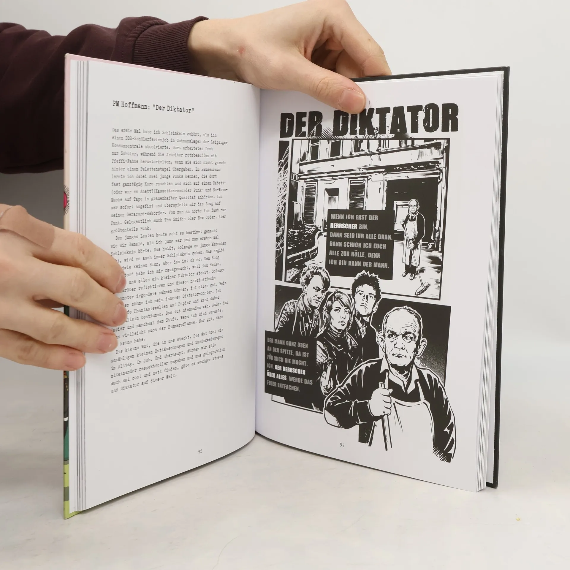 Der Songcomic »Betreten auf eigene Gefahr« setzt der stilprägenden DDR-Punkband Schleimkeim aus dem thüringischen Stotternheim ein Denkmal. Acht Zeichner: innen haben jeweils einen Schleimkeim-Song in Bilder verwandelt, die immer auch DDR-Geschichte und die Punk-Subkultur abbilden. Im Osten war Punk eine hochpolitische Angelegenheit, Bands wurden wegen vermeintlich staatsfeindlicher Inhalte verboten, Musiker kamen für die Texte ins Gefängnis. Punk war in der DDR illegal. Einige der Zeichner: innen stammen aus der Subkultur der DDR und erlebten die Band vor 1989, andere fanden einen späteren Zugang. Darüber berichten sie im Buch. Was alle vereint, ist die Liebe zu Krawall und Remmidemmi. Der harte Sound von Schleimkeim schwebte über ihnen, als sie die Comics schufen. Frank Willmann hat für »Betreten auf eigene Gefahr« zudem einige weiterführende Texte zur Band verfasst. Als der Bandleader und Spiritus Rector Dieter »Otze« Ehrlich 2005 in der geschlossenen Psychiatrie verstirbt, wird es für ein paar Jahre ruhig um die Band. Seit 2008 geben die verbliebenen Bandmitglieder wieder gelegentlich Konzerte. So auch 2021 vor ausverkauftem Haus in Berlin (SO36) und Dresden (Chemiefabrik).