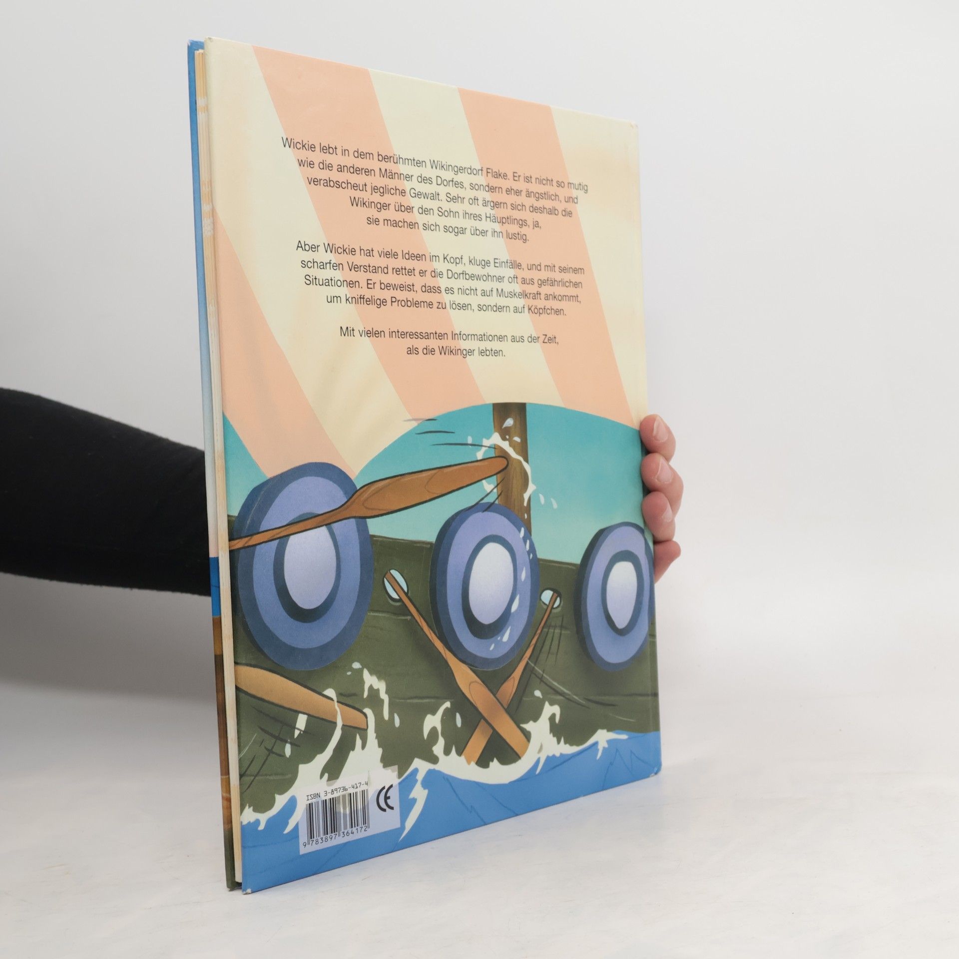 Wickie lebt in dem berühmten Wikingerdorf Flake. Er ikst nicht so mutig wie die anderen Männer des Dorfes, sondern eher ängstlich, und verabscheut jegliche Gewalt. Sehr oft ärgern sich deshalb die Wikinger über den Sohn ihres Häuptlings, ja, sie machen sich sogar über ihn lustig. Aber Wickie hat viele Ideen im Kopf, kluge Einfälle, und mit seinem scharfen Verstand rettet er die Dorfbewohner oft aus gefährlichen Situationen. Er beweist, dass es nicht auf Muskelkraft ankommt, um kniffelige Probleme zu lösen, sondern auf Köpfchen. Mit vielen interessanten Informationen aus der Zeit, als die Wikinger lebten.