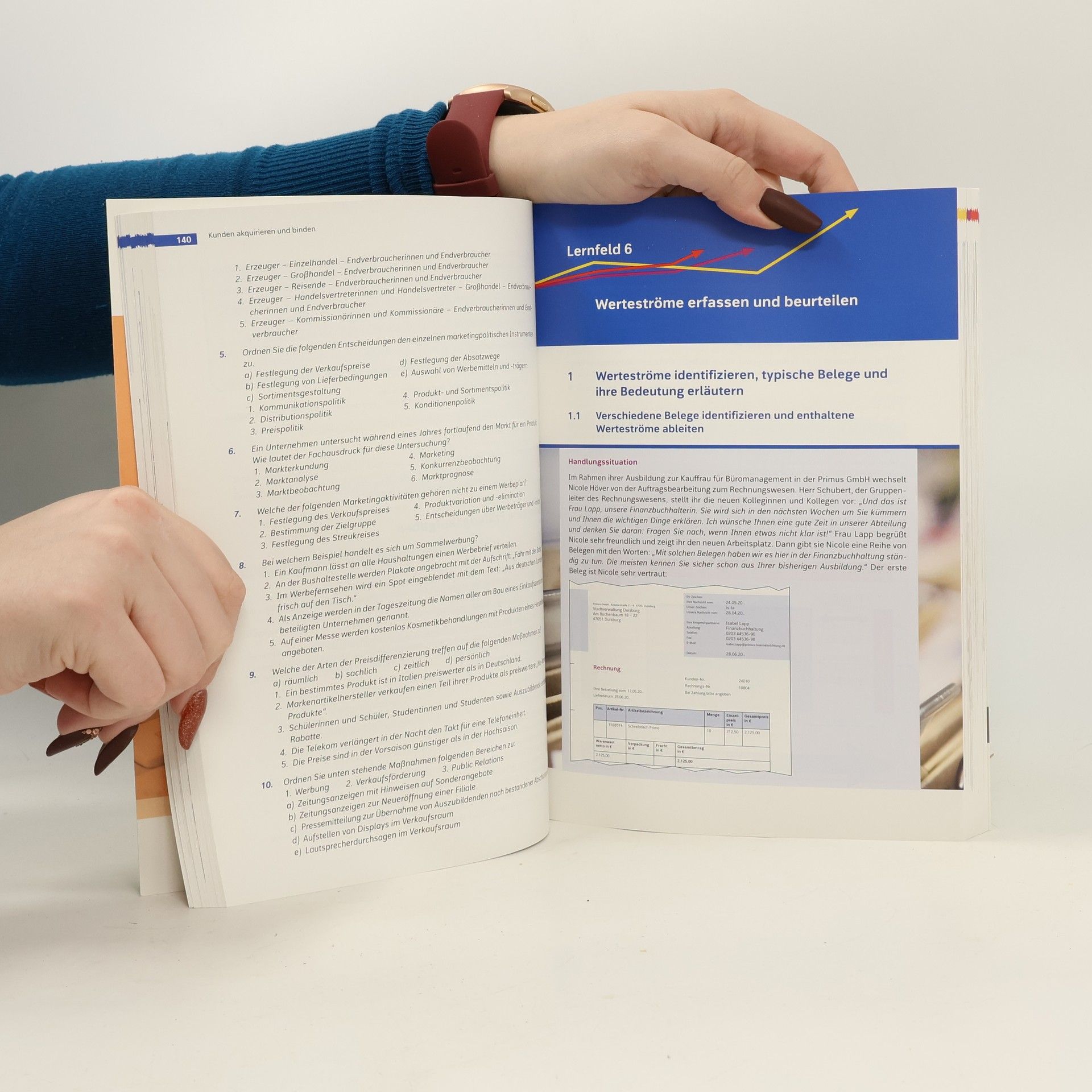 deckt die Lernfelder 5-8 des Rahmenlehrplans ab praxisnahe Erarbeitung von Fallbeispielen mit Hilfe eines Modellunternehmens Struktur innerhalb der Kapitel: Handlungssituation, Sachinhalt, Zusammenfassung, Aufgaben Fremdsprache Englisch ist in den Lernfeldern eingearbeitet Lehrkräfte und Schülerinnen und Schüler können anhand aktueller Zahlen und Sachverhalte arbeiten und kommen so ihrer beruflichen und persönlichen Lebenswelt nahe Die 4. Auflage 2023 wurde umfassend aktualisiert: die Lernfelder 5 „Kunden akquirieren und binden“ und 8 „Personalwirtschaftliche Aufgaben übernehmen“ wurden in besonderem Maße aktualisiert berücksichtigt durchgängig die Aspekte der Digitalisierung greift die gesetzlichen Änderungen auf alle Abbildungen, Zahlen und Schwellwerte sind auf dem Stand von 2022 die Änderungen zur DIN 5008 sind in alle Briefe, Schriftstücke und Formulare eingearbeitet alle Links sind auf dem aktuellen Stand und in die Erarbeitung der Sachinhalte eingebunden die 4. Auflage unterstützt das hybride Lernen „ Ich empfehle dieses Lehrwerk weil es durch die konsequente Orientierung am Modellunternehmen und der Aktualität der Berufs- und Lebenswelt der Schülerinnen und Schüler in hohem Maße nahe kommt .“(Andreas Blank)