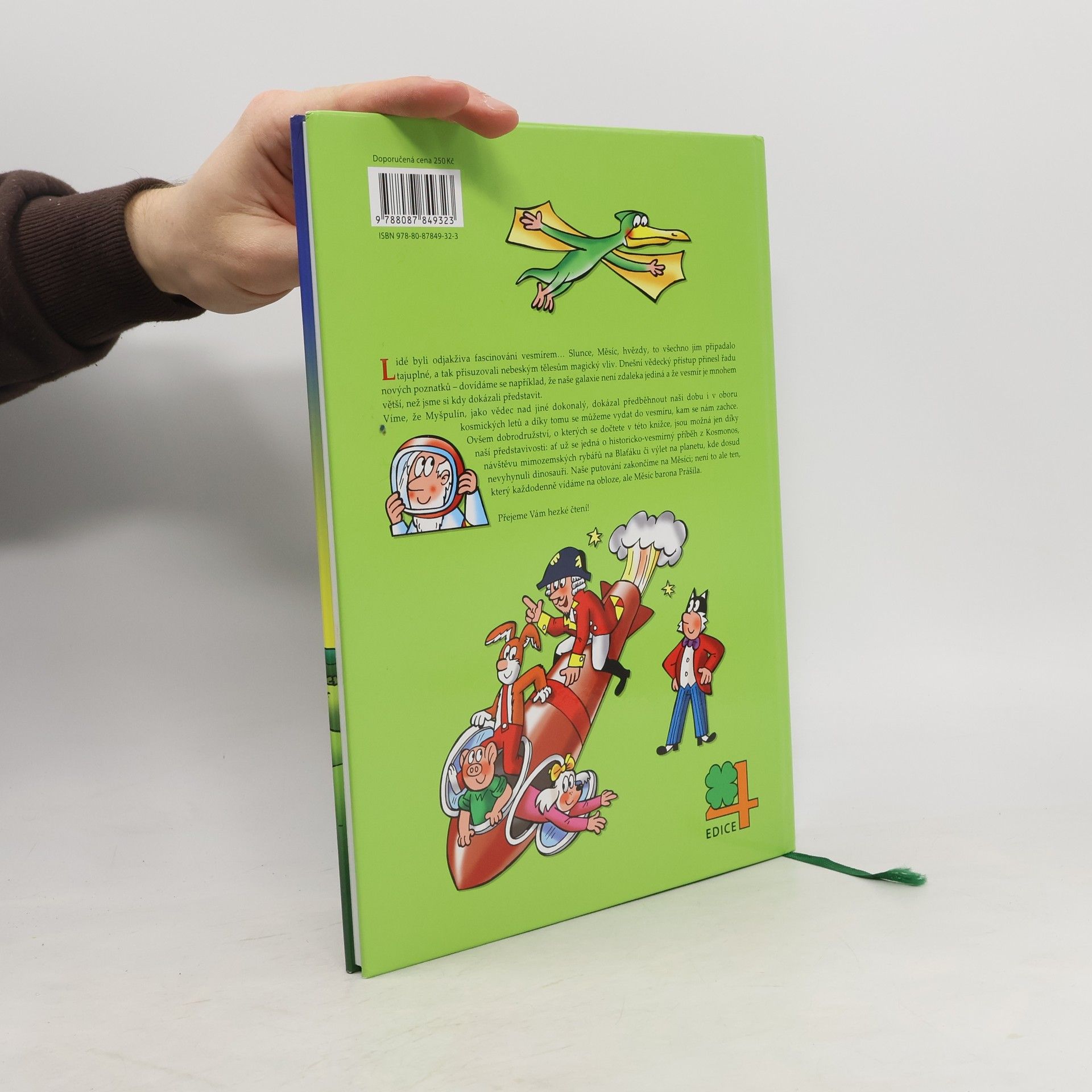 V pořadí desátá čtyřlístková kniha z edice 4. Tentokrát bude mít Čtyřlístek co do činění s vesmírem. Na rybníku Blaťáku se setká s mimozemšťany, v Kosmonosech objeví dávného kosmonauta, zaletí si na vzdálenou planetu dinosaurů a potká se dokonce se slovutným baronem Prášilem. Obsahuje komiksy: Mimozemšťané na Blaťáku - Jaroslav Němeček, Jaroslav Němeček Kosmonos z kosmonmos - Hana Lamková, Jaroslav Němeček Planeta dinosaurů - Radim Krajčovič, Jaroslav Němeček Výlet na měsíc - Jiří Poborák, Jaroslav Němeček