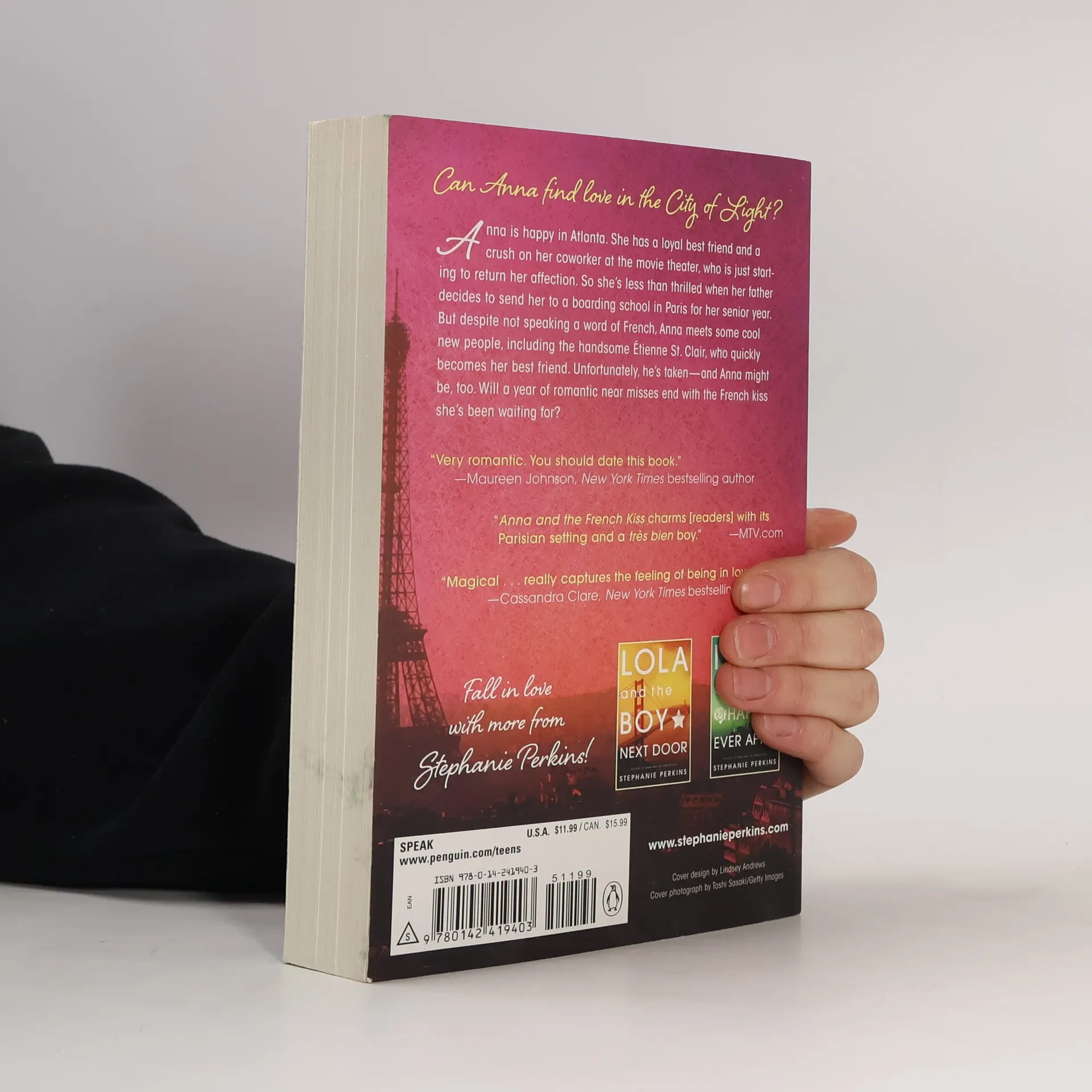There is an alternate cover edition for this ISBN13 here. Can Anna find love in the City of Light? Anna is happy in Atlanta. She has a loyal best friend and a crush on her coworker at the movie theater, who is just starting to return her affection. So she's not too pleased when her father decides to send her to a boarding school in Paris for her senior year. But despite not speaking a word of French, Anna meets some cool new friends, including the handsome Étienne St. Clair, who quickly becomes her best friend. Unfortunately, he's taken--and Anna might be too. Will a year of romantic near misses end with the French kiss she's been waiting for?