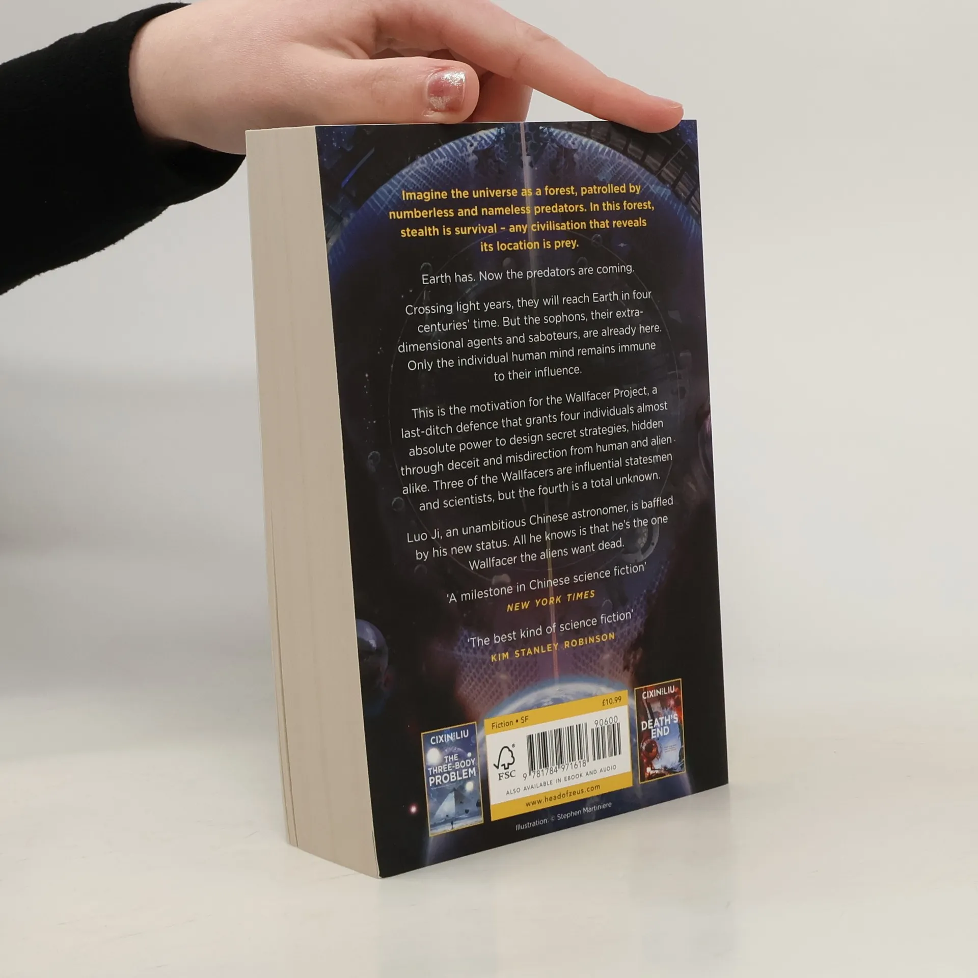 Imagine the universe as a forest, patrolled by numberless and nameless predators. In this forest, stealth is survival – any civilisation that reveals its location is prey. Earth has. Now the predators are coming. Crossing light years, they will reach Earth in four centuries' time. But the sophons, their extra-dimensional agents and saboteurs, are already here. Only the individual human mind remains immune to their influence. This is the motivation for the Wallfacer Project, a last-ditch defence that grants four individuals almost absolute power to design secret strategies, hidden through deceit and misdirection from human and alien alike. Three of the Wallfacers are influential statesmen and scientists, but the fourth is a total unknown. Luo Ji, an unambitious Chinese astronomer, is baffled by his new status. All he knows is that he's the one Wallfacer that Trisolaris wants dead.