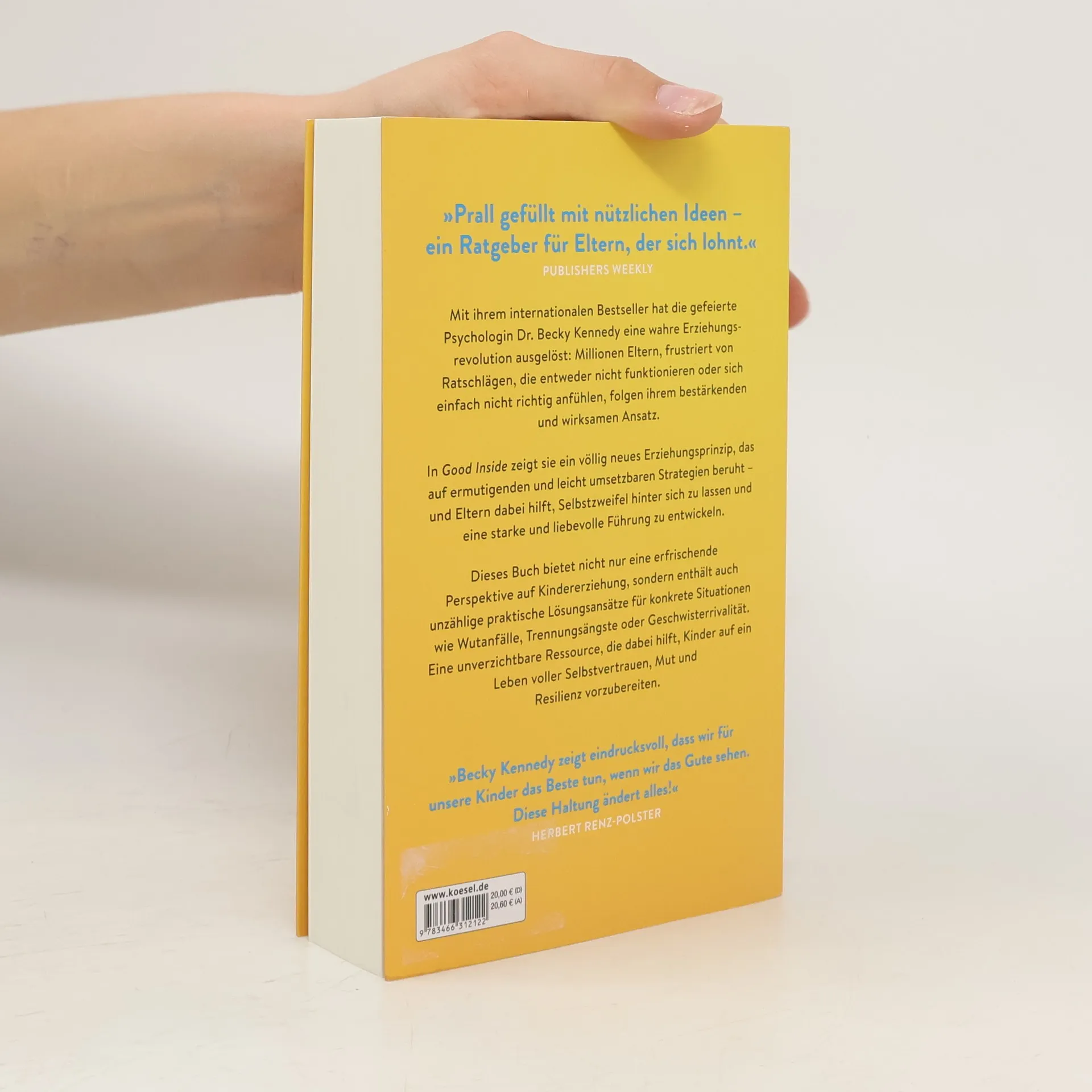 »Prall gefüllt mit nützlichen Ideen – ein Ratgeber für Eltern, der sich lohnt.« (Publishers Weekly) Mit ihrem internationalen Bestseller hat die gefeierte Psychologin Dr. Becky Kennedy eine wahre Erziehungsrevolution ausgelöst: Millionen Eltern, frustriert von Ratschlägen, die entweder nicht funktionieren oder sich einfach nicht richtig anfühlen, folgen ihrem bestärkenden und wirksamen Ansatz. In Good Inside zeigt sie ein völlig neues Erziehungsprinzip , das auf ermutigenden und leicht umsetzbaren Strategien beruht – und Eltern dabei hilft, Selbstzweifel hinter sich zu lassen und eine starke und liebevolle Führung zu entwickeln. Dieses Buch bietet nicht nur eine erfrischende Perspektive auf Kindererziehung, sondern enthält auch unzählige praktische Lösungsansätze für konkrete Situationen wie Wutanfälle, Trennungsängste, Geschwisterrivalität und vieles mehr. Eine unverzichtbare Ressource, die dabei hilft, Kinder auf ein Leben voller Selbstvertrauen, Mut und Resilienz vorzubereiten. »Becky Kennedy zeigt eindrucksvoll, dass wir für unsere Kinder das Beste tun, wenn wir das Gute sehen. Diese Haltung ändert alles!« Herbert Renz-Polster »Ich liebe es, wie Becky Kennedy Eltern an die Hand nimmt und sie so verständnisvoll wie alltagspraktisch daran erinnert, dass es keine schwierigen Kinder gibt – nur wundervolle Kinder mit manchmal schwierigen Verhaltensweisen, die Impulskontrolle und Emotionsregulation eben erst noch lernen müssen. Wie wir ihnen dabei helfen können, erklärt dieses wunderbare Buch.« Nora Imlau »Becky Kennedy zeigt, wie wir alle bessere Beziehungen führen können – miteinander und zu uns selbst. Ein heilsames Buch für die gesamte Familie!« Anne Dittmann » Good Inside lässt uns zurück mit einem liebevolleren und empathischeren Blick – nicht nur auf unseren Nachwuchs, sondern auch auf uns selbst. So ein wertvoller Beitrag zum Paradigmenwechsel in der Begleitung von Kindern!« Carina Thiemann »Becky Kennedy gelingt es, unzählige Alltagssituationen, an denen Eltern immer wieder verzweifeln, mit optimistischer Leichtigkeit aufzulösen. Ihr Buch ist ein großartiges Nachschlagewerk für Eltern, die im Dschungel der Erziehungsratgeber Orientierung suchen.« Sandra Teml