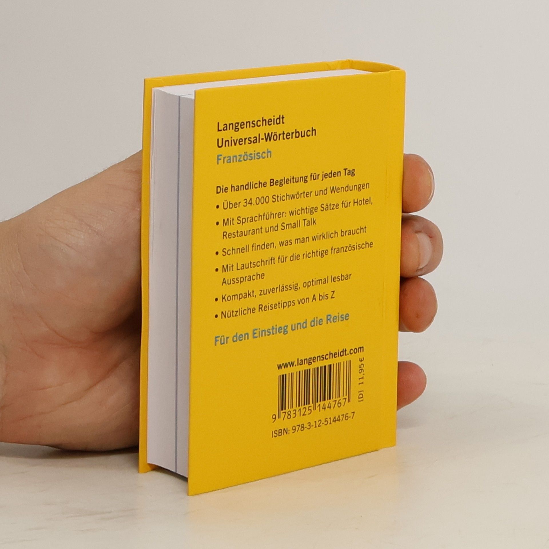 Das handliche Französisch-Wörterbuch für jeden Tag! Über 34.000 Stichwörter und Wendungen Mit Sprachführer: wichtige Sätze für Hotel, Restaurant und Small Talk Schnell finden, was man wirklich braucht Mit Lautschrift für die richtige französische Aussprache Kompakt, zuverlässig, optimal lesbar Nützliche Reisetipps von A bis Z Der Reise-Allrounder von Langenscheidt 34.000 Stichwörter, kompaktes Format – in Langenscheidts Universal-Wörterbuch Französisch ist alles drin, was man auf Reisen braucht. Einfach in die Tasche stecken und Sie sind gerüstet für einen gelungenen Urlaub! Der praktische Begleiter für jeden Tag Wie heißt das noch mal auf Französisch? Einfach schnell nachschlagen und weiter geht's. Mit dem übersichtlichen Layout und dank des aktuellen Wortschatzes ist das gesuchte Wort schnell gefunden. Der Anhang bietet zusätzlich Hilfestellung mit den wichtigsten Sätzen für Hotel, Restaurant und Smalltalk, und ein Mini-Reiseführer enthält nützliche Reise-Informationen von A bis Z.