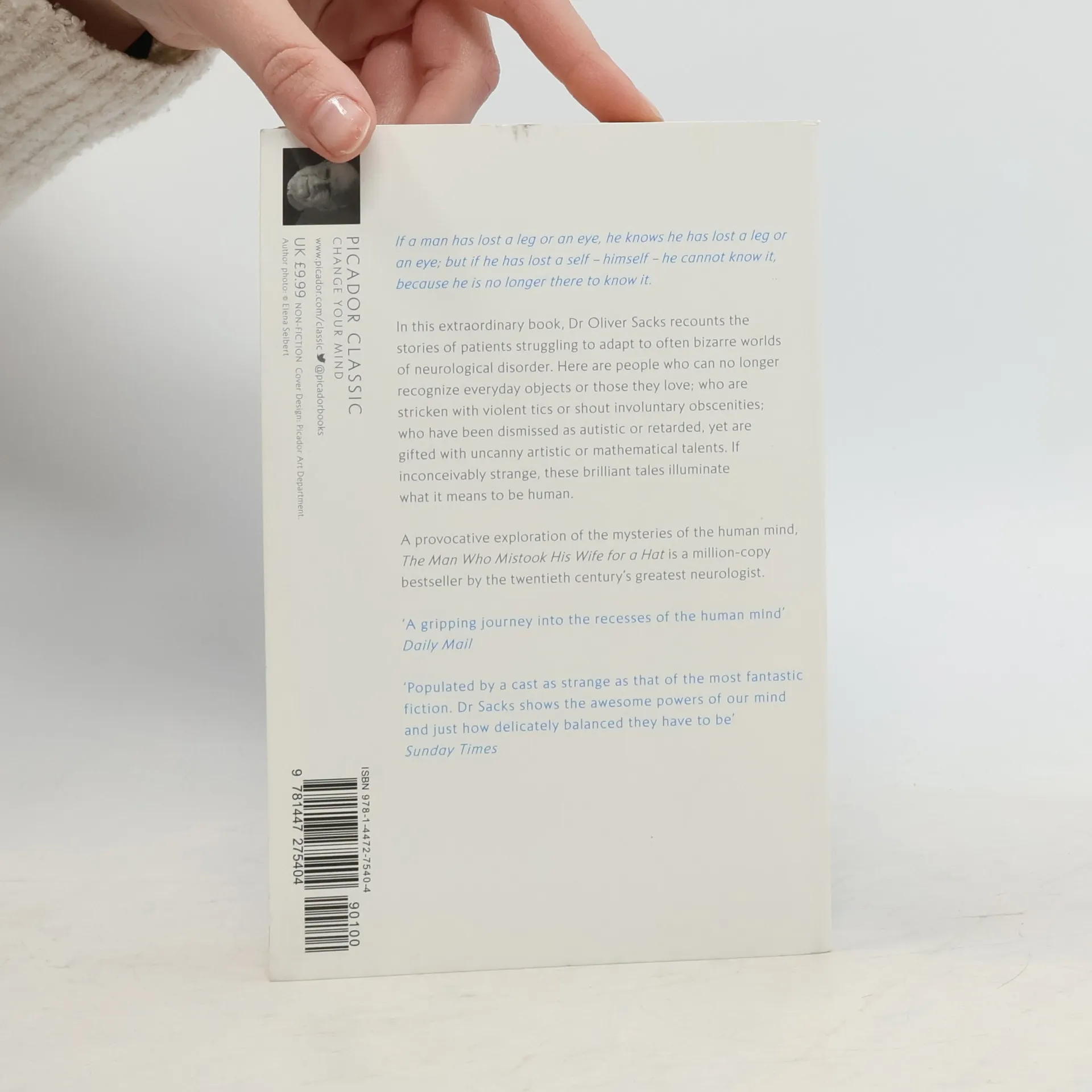 With an introduction by Will SelfA classic work of psychology, this international bestseller provides a groundbreaking insight into the human mind.If a man has lost a leg or an eye, he knows he has lost a leg or an eye; but if he has lost a self - himself - he cannot know it, because he is no longer there to know it. In this extraordinary book, Dr. Oliver Sacks recounts the stories of patients struggling to adapt to often bizarre worlds of neurological disorder. Here are people who can no longer recognize everyday objects or those they love; who are stricken with violent tics or shout involuntary obscenities; who have been dismissed as autistic or retarded, yet are gifted with uncanny artistic or mathematical talents. If inconceivably strange, these brilliant tales illuminate what it means to be human. A provocative exploration of the mysteries of the human mind, The Man Who Mistook His Wife for a Hat is a million-copy bestseller by the twentieth century's greatest neurologist.
