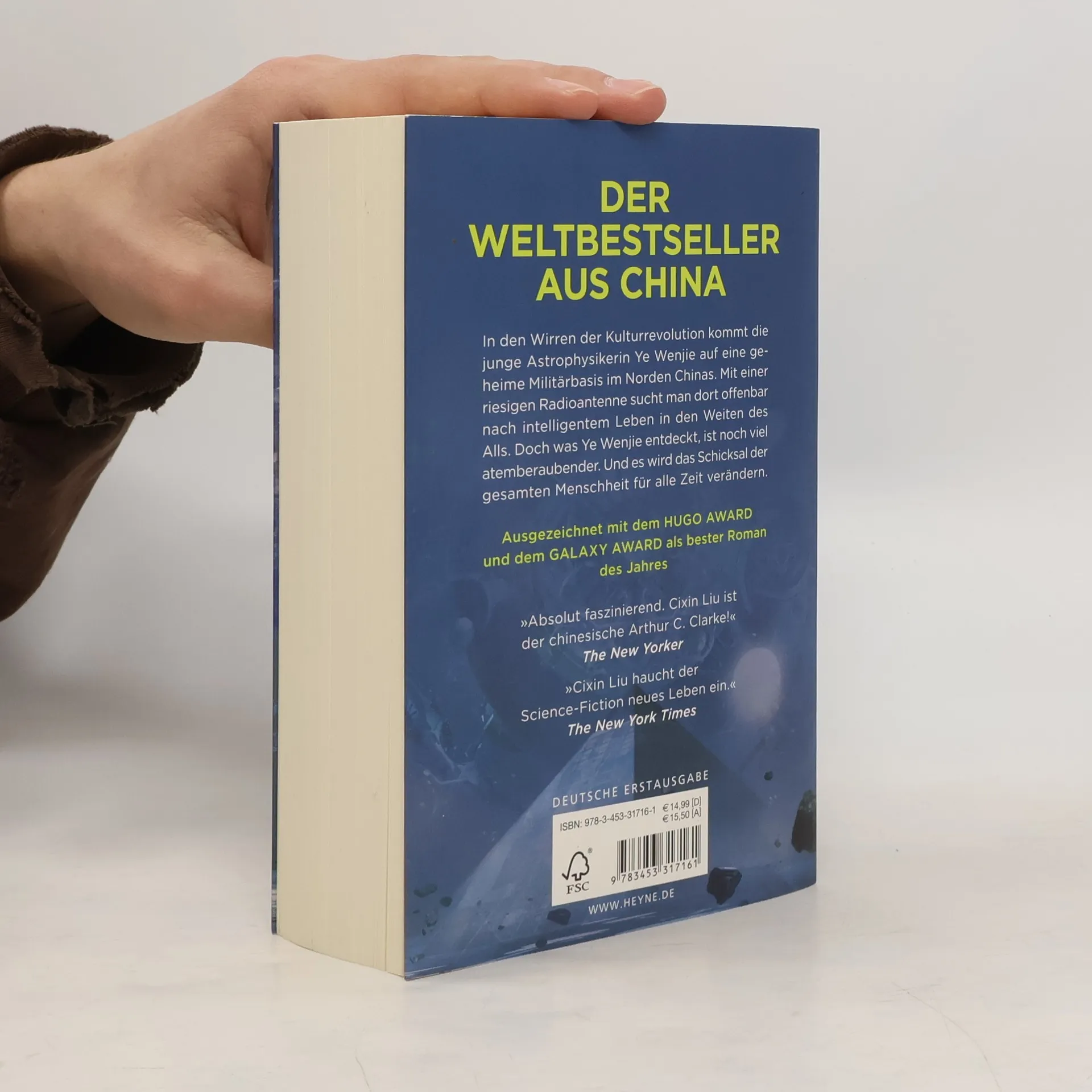 Die Science-Fiction-Sensation aus China China, Ende der 1960er-Jahre: Während im ganzen Land die Kulturrevolution tobt, beginnt eine kleine Gruppe von Astrophysikern, Politkommissaren und Ingenieuren ein streng geheimes Forschungsprojekt. Ihre Aufgabe: Signale ins All zu senden und noch vor allen anderen Nationen Kontakt mit Außerirdischen aufzunehmen. Fünfzig Jahre später wird diese Vision Wirklichkeit – auf eine so erschreckende, umwälzende und globale Weise, dass dieser Kontakt das Schicksal der Menschheit für immer verändern wird.