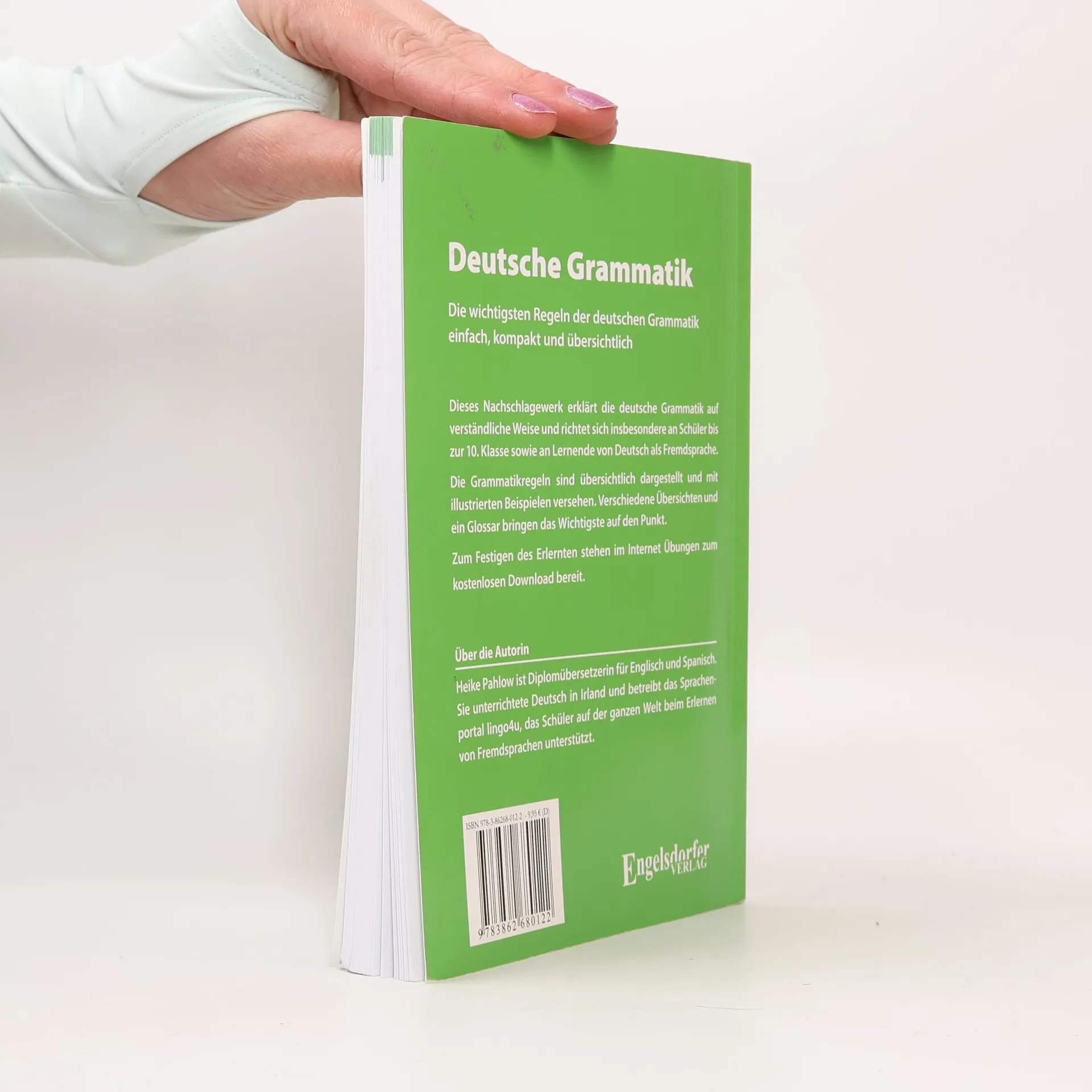 Dieses Nachschlagewerk erklärt die deutsche Grammatik auf verständliche Weise und richtet sich insbesondere an Schüler bis zur 10. Klasse sowie an Lernende von Deutsch als Fremdsprache. Die Grammatikregeln sind übersichtlich dargestellt und mit illustrierten Beispielen versehen. Verschiedene Übersichten und ein Glossar bringen das Wichtigste auf den Punkt. Mit Hinweisen auf Umgangssprache und Schriftsprache wird verdeutlicht, warum bestimmte Formulierungen aus dem alltäglichen Sprachgebrauch in geschriebenen Texten nicht verwendet werden sollten. Zum Festigen des Erlernten stehen im Internet Übungen zum kostenlosen Download bereit. Über die Autorin: Heike Pahlow ist Diplomübersetzerin für Englisch und Spanisch. Sie unterrichtete Deutsch in Irland und betreibt das Sprachenportal lingo4u, das Schüler auf der ganzen Welt beim Erlernen von Fremdsprachen unterstützt.