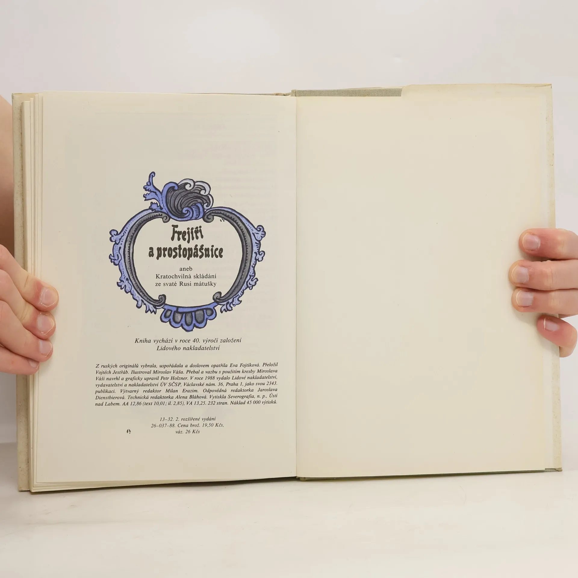 Soubor rozverných příběhů ze starší ruské literatury, jejichž pojítkem je zábavný děj, většinou s erotickou zápletkou. Kromě lidových textů obsahuje i novely M. D. Čulkova (Sličná kuchařka) a N. M. Karamzina (Ubohá Líza). Z ruských originálů vybrala, uspořádala a doslovem opatřila Eva Fojtíková.
