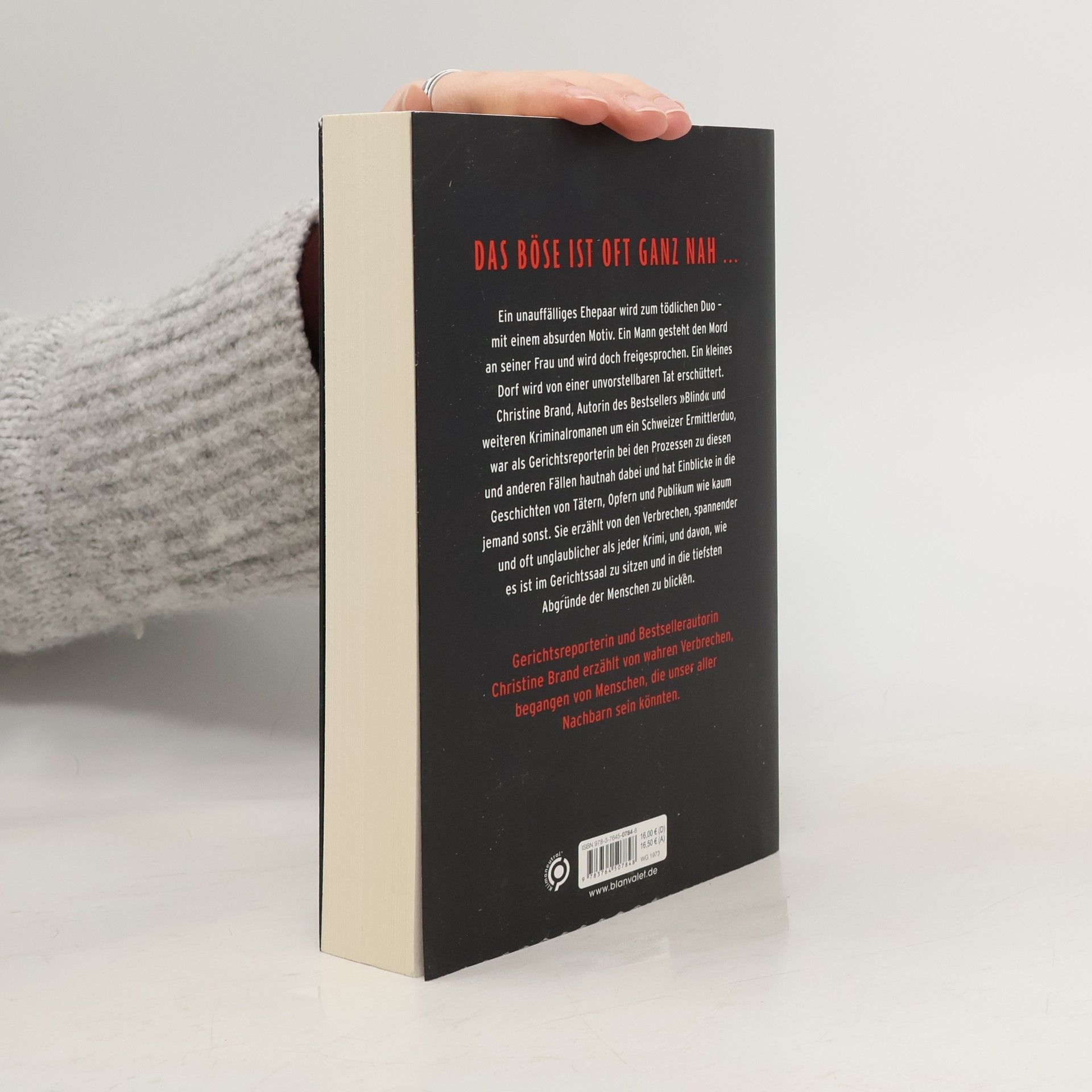Gerichtsreporterin und Bestsellerautorin Christine Brand erzählt wahre Verbrechen, begangen von Menschen die unser aller Nachbarn sein könnten. Ein unauffälliges Ehepaar wird zum tödlichen Duo – mit einem absurden Motiv. Ein Mann gesteht den Mord an seiner Frau und wird doch freigesprochen. Ein kleines Dorf wird von einer unvorstellbaren Tat erschüttert. Christine Brand, Autorin des Bestsellers »Blind« und weiterer Kriminalromane um ein Schweizer Ermittlerduo, war als Gerichtsreporterin bei den Prozessen zu diesen und anderen Fällen hautnah dabei und hat Einblicke in die Geschichten von Tätern, Opfern und Publikum wie kaum jemand sonst. Sie erzählt von den Verbrechen, spannender und oft unglaublicher als jeder Krimi, und davon, wie es ist, im Gerichtssaal zu sitzen und in die tiefsten Abgründe der Menschen zu blicken.