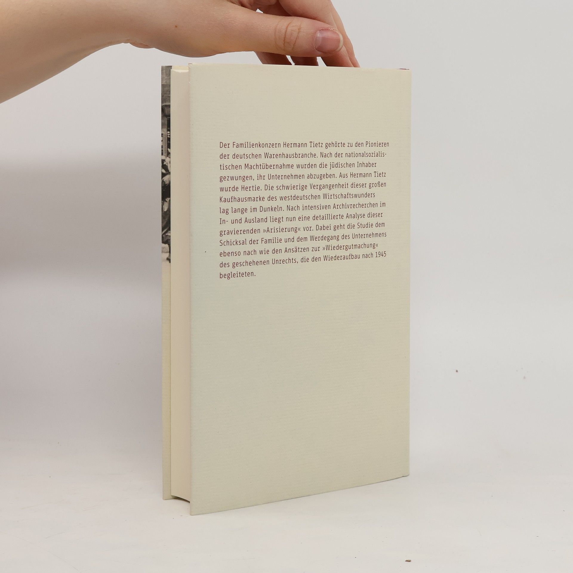 Wie aus dem Warenhauskonzern Hermann Tietz Hertie wurde In den 1920er Jahren stand der Warenhauskonzern Hermann Tietz wie kaum ein anderer für eine moderne Kaufhauskultur. Nach der nationalsozialistischen Machtübernahme wurde das Unternehmen den jüdischen Inhabern genommen. Aus der Hermann Tietz OHG wurde die Hertie GmbH unter der Leitung des ehemaligen Angestellten Georg Karg, der den Konzern später übernahm. Die Autoren rekonstruieren die Umstände dieser frühen „Arisierung“. Die Studie beleuchtet auch das Schicksal der Familie Tietz nach dem Verlust ihres Unternehmens und den Werdegang des Hertie-Konzerns bis zu den Auseinandersetzungen um Restitution und Entschädigung in den unmittelbaren Nachkriegsjahren. Gestützt auf vielfältige Quellen, darunter bislang nicht zugängliche Dokumente, entsteht so erstmals ein detailliertes Bild des „Arisierungsprozesses“ und seiner Folgen.