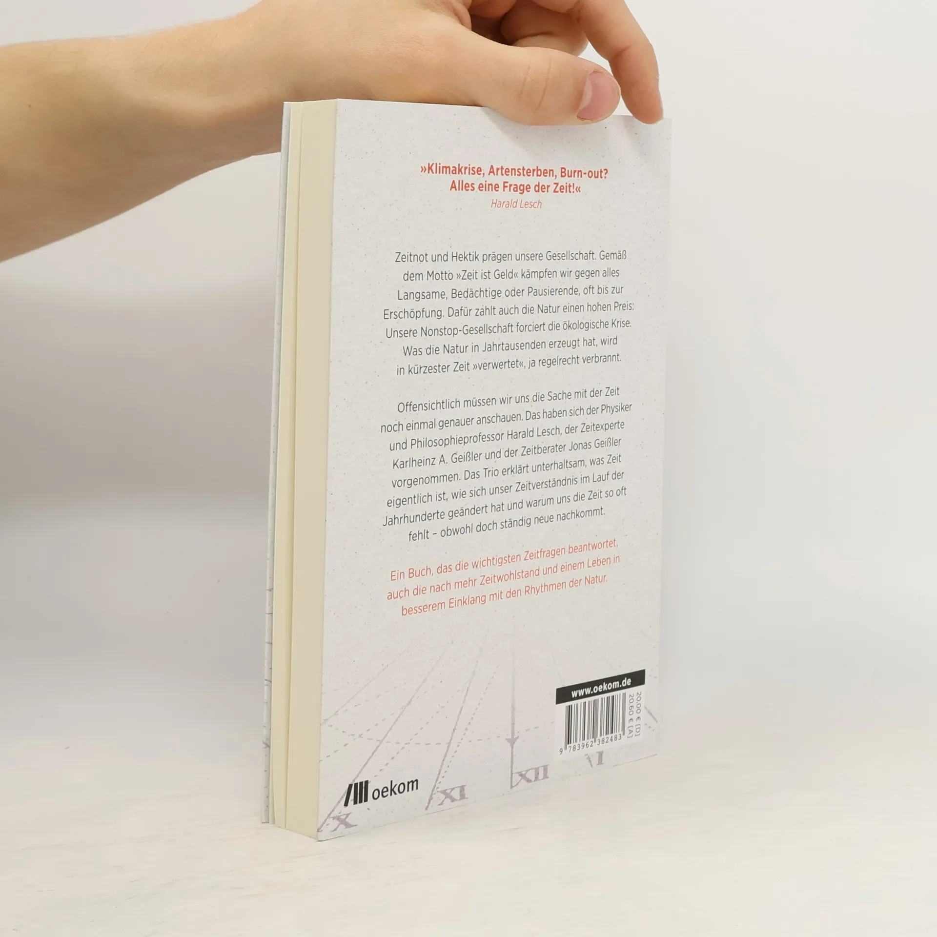 »Klimakrise, Artensterben, Burn-out? Alles eine Frage der Zeit!« Harald Lesch Zeitnot und Hektik prägen unsere Gesellschaft. Gemäß dem Motto »Zeit ist Geld« kämpfen wir gegen alles Langsame, Bedächtige oder Pausierende, oft bis zur Erschöpfung. Dafür zahlt auch die Natur einen hohen Preis: Unsere Nonstop-Gesellschaft forciert die ökologische Krise. Was die Natur in Jahrtausenden erzeugt hat, wird in kürzester Zeit »verwertet«, ja regelrecht verbrannt. Offensichtlich müssen wir uns die Sache mit der Zeit noch einmal genauer anschauen. Das haben sich der Physiker und Philosophieprofessor Harald Lesch, der Zeitexperte Karlheinz A. Geißler und der Zeitberater Jonas Geißler vorgenommen. Das Trio erklärt unterhaltsam, was Zeit eigentlich ist, wie sich unser Zeitverständnis im Lauf der Jahrhunderte geändert hat und warum uns die Zeit so oft fehlt – obwohl doch ständig neue nachkommt. Ein Buch, das die wichtigsten Zeitfragen beantwortet, auch die nach mehr Zeitwohlstand und einem Leben in besserem Einklang mit den Rhythmen der Natur.