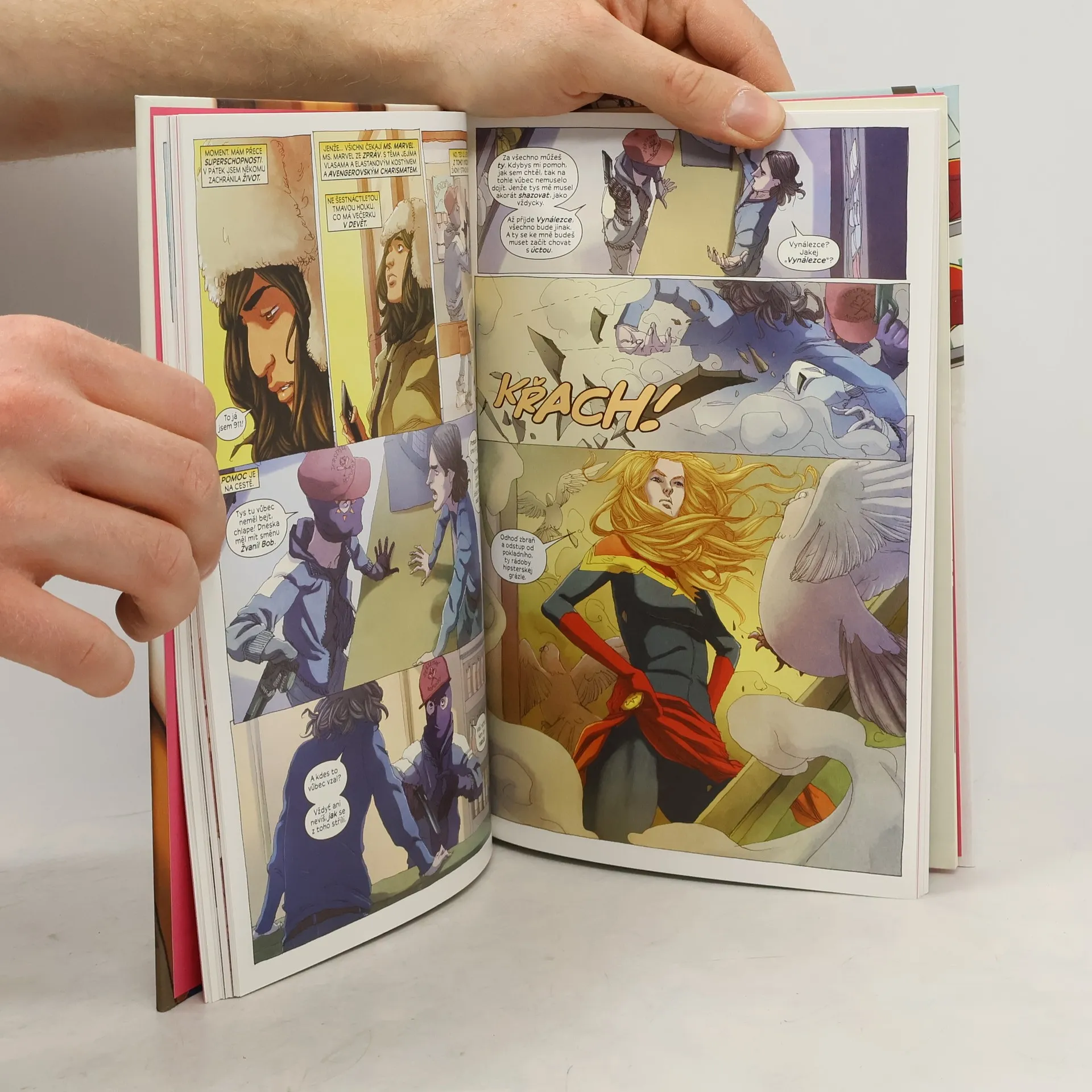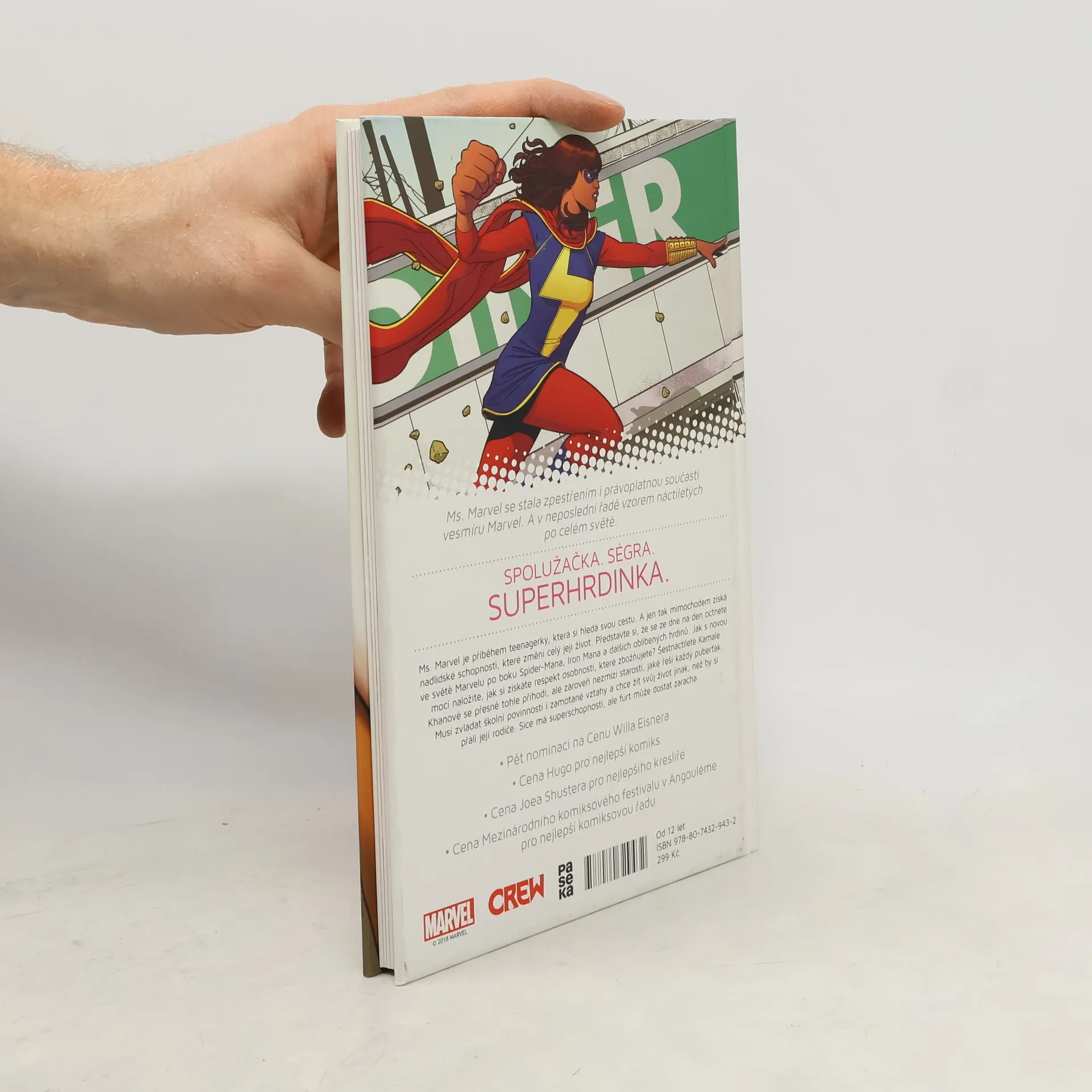 SPOLUŽAČKA. SÉGRA. SUPERHRDINKA. Ms. Marvel je příběhem teenagerky, která si hledá svou cestu. A jen tak mimochodem získá nadlidské schopnosti, které změní celý její život. Představte si, že se ze dne na den octnete ve světě Marvelu po boku Spider-Mana, Iron Mana a dalších oblíbených hrdinů. Jak s novou mocí naložíte, jak si získáte respekt osobností, které zbožňujete? Šestnáctileté Kamale Khanové se přesně tohle přihodí, ale zároveň nezmizí starosti, jaké řeší každý puberťák. Musí zvládat školní povinnosti i zamotané vztahy a chce žít svůj život jinak, než by si přáli její rodiče. Sice má superschopnosti, ale furt může dostat zaracha.