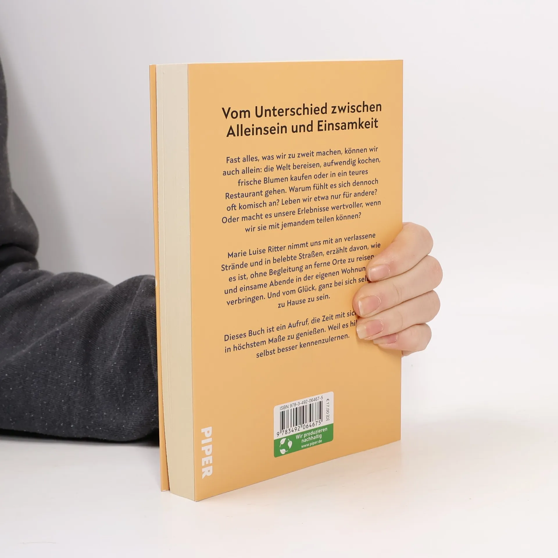 Vom Unterschied zwischen Alleinsein und Einsamkeit Fast alles, was wir zu zweit machen, können wir auch allein: die Welt bereisen, aufwendig kochen, frische Blumen kaufen. Warum fühlt es sich dann oft komisch an? Leben wir etwa nur für andere? Oder macht es unsere Erlebnisse wertvoller, wenn wir sie mit jemandem teilen können? Marie Luise Ritter nimmt ihre Leser: innen mit an verlassene Strände und in belebte Straßen, erzählt von fernen Orten und einsamen Abenden in ihrer Wohnung. Und vom Glück, ganz bei sich selbst zu Hause zu sein. Dieses Buch ist ein Ausbruch aus gesellschaftlichen Rastern, ein großes »Ja« zu Mut und Eigenständigkeit.
