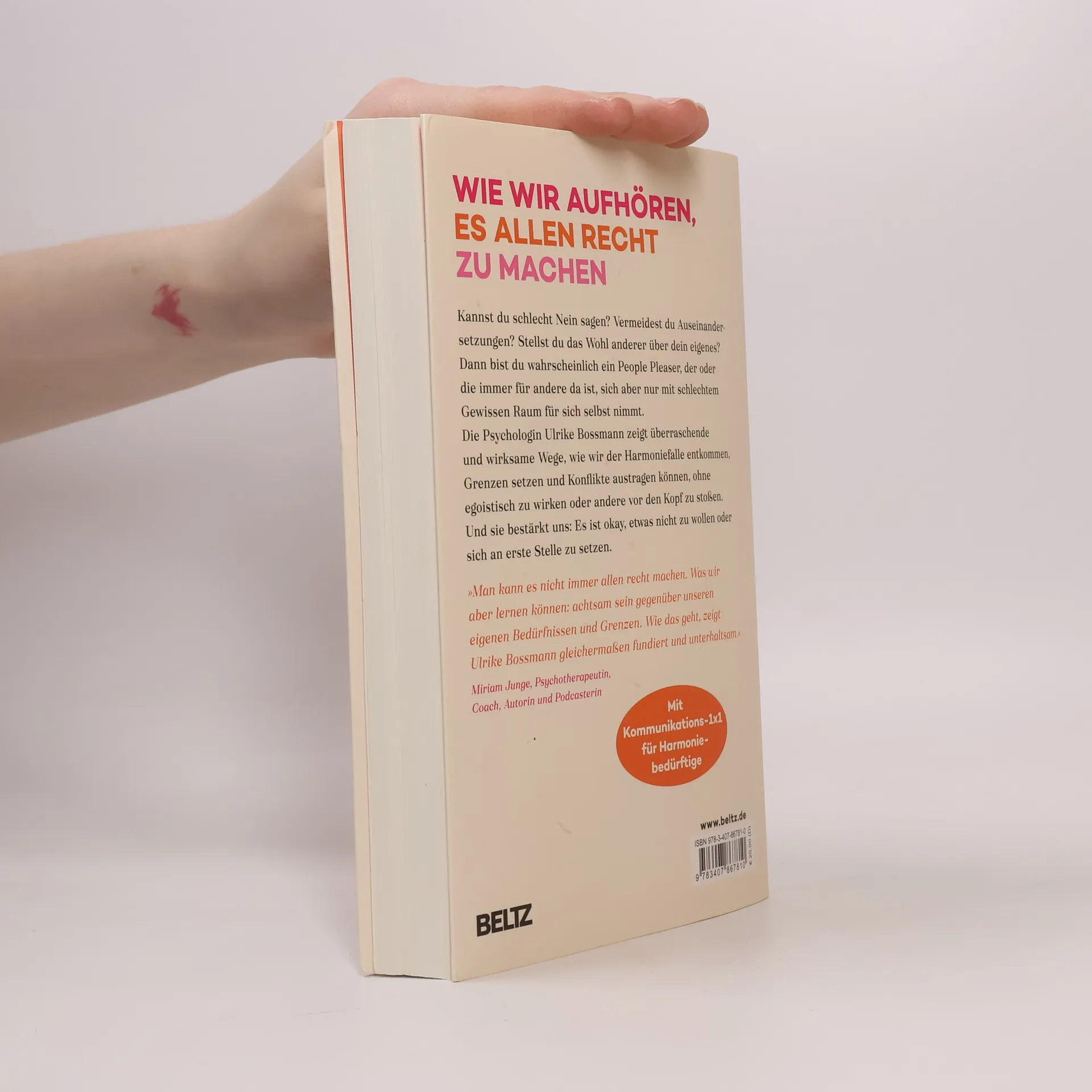 People Pleaser können oft nicht aus ihrer Haut. Sie sagen Ja, auch wenn sie eigentlich Nein meinen. Sie fühlen sich für das Wohlergehen anderer verantwortlich und spüren erst viel zu spät, dass sie sich selbst dabei völlig vergessen haben. Oft passen sie sich lieber an, als bei anderen anzuecken. Betroffene sind meist sehr feinfühlige und empathische Menschen, die Gefahr laufen, auszubrennen, wenn sie ihre eigenen Bedürfnisse und Wünsche übergehen. Die Psychologin Ulrike Bossmann beschreibt anhand neuester Forschungserkenntnisse und Fallbeispiele die Auslöser und Auswirkungen von People Pleasing und zeigt, wie man ohne schlechtes Gewissen Grenzen zieht und Konflikte austrägt, statt um der Harmonie willen zu schweigen. Zahlreiche Reflexionen und Übungen unterstützen dabei, mit sich selbst ebenso fürsorglich umzugehen wie mit anderen.