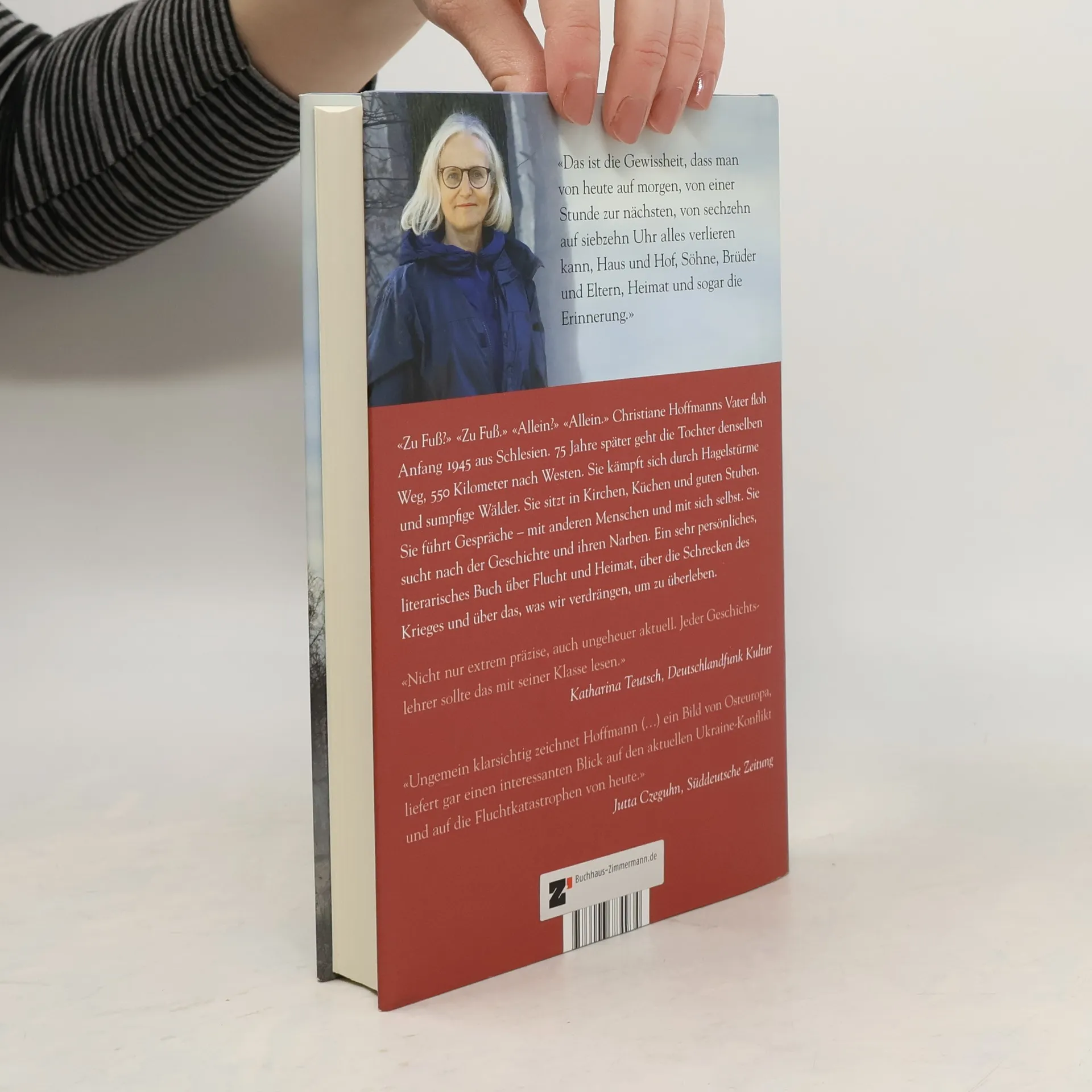 Christiane Hoffmanns Vater floh Anfang 1945 aus Schlesien. 75 Jahre später begibt sich die Tochter auf denselben Weg, 550 Kilometer nach Westen. Auf ihrer Reise kämpft sie sich durch Hagelstürme und sumpfige Wälder, sucht Zuflucht in Kirchen und Küchen und führt Gespräche – sowohl mit anderen als auch mit sich selbst. Dabei erforscht sie die Geschichte ihrer Familie und die Narben, die der Krieg hinterlassen hat. In den 1970er Jahren sitzen die Kinder unter dem Tisch, während die Erwachsenen über ihre verlorene Heimat sprechen und ihre Verletzungen an die nächste Generation weitergeben. Nach dem Tod ihres Vaters kehrt die Tochter in das schlesische Dorf zurück, das jetzt Rózyna heißt. Am 22. Januar 2020 bricht sie auf, um den Weg seiner Flucht noch einmal zu gehen. Was bleibt vom Fluchtschicksal? Wie gehen Familien und Gesellschaften, Deutsche, Polen und Tschechen mit der Vergangenheit um? Hoffmanns Buch bringt die Erinnerung an Flucht und Vertreibung ins 21. Jahrhundert und verknüpft ihre Familiengeschichte mit historischen Erzählungen. Es ist ein sehr persönliches Werk, das die Suche einer Tochter nach ihrem Vater und dessen Geschichte thematisiert. Ein berührendes und emotionales Buch über den Verlust von Heimat und dessen Bedeutung für nachfolgende Generationen.