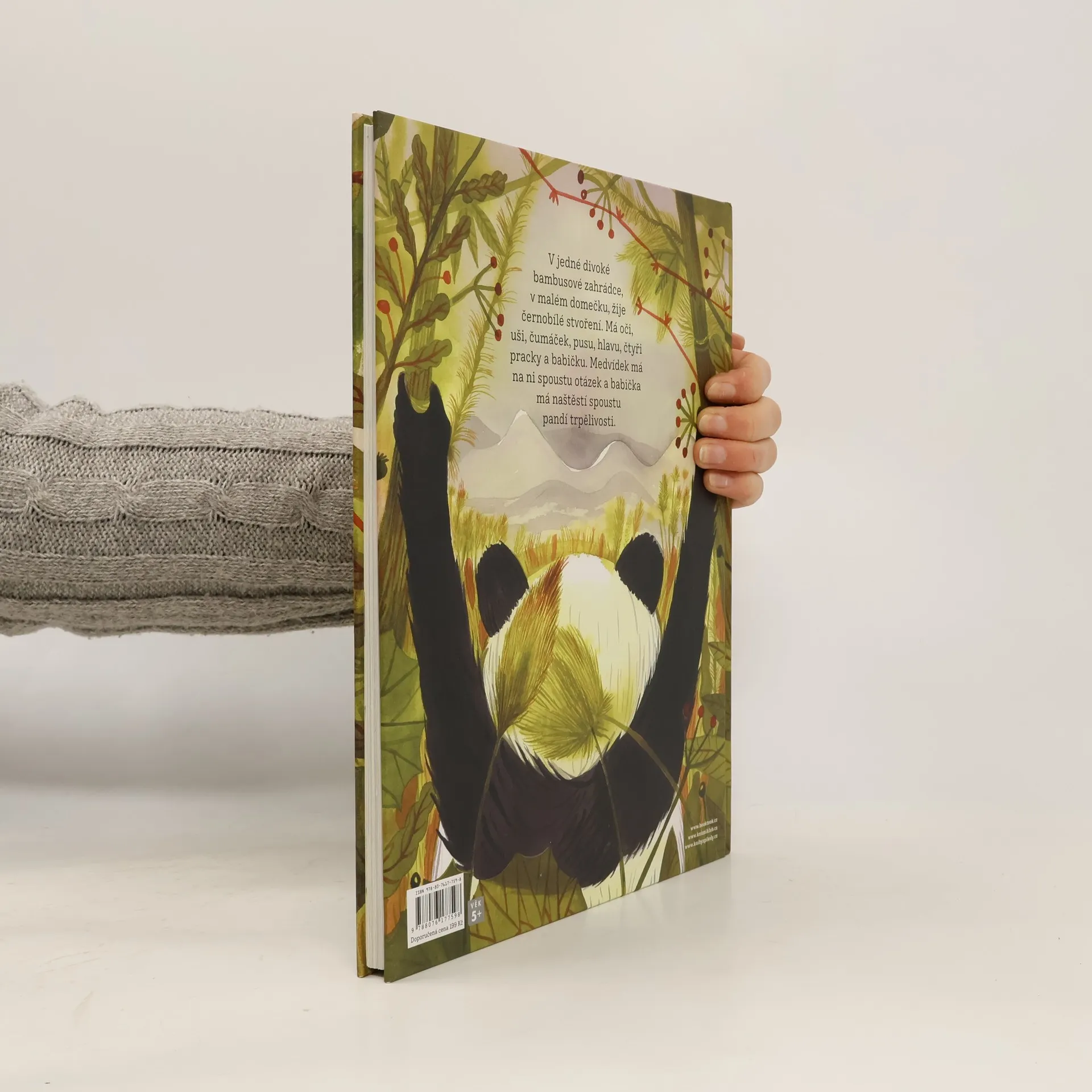 V jedné divoké bambusové zahrádce žije malé černobílé stvoření. Má oči, uši, čumáček, pusu, hlavu, čtyři pracky a babičku. Medvídek má na ni spoustu otázek a babička má naštěstí spoustu pandí trpělivosti. Jak se žije pandí život, se děti dozvědí v nové knize oblíbeného autora Jiřího Kahouna, doprovázené krásnými ilustracemi Anety Františky Holasové. Kniha je určena dětem od 6 let.
