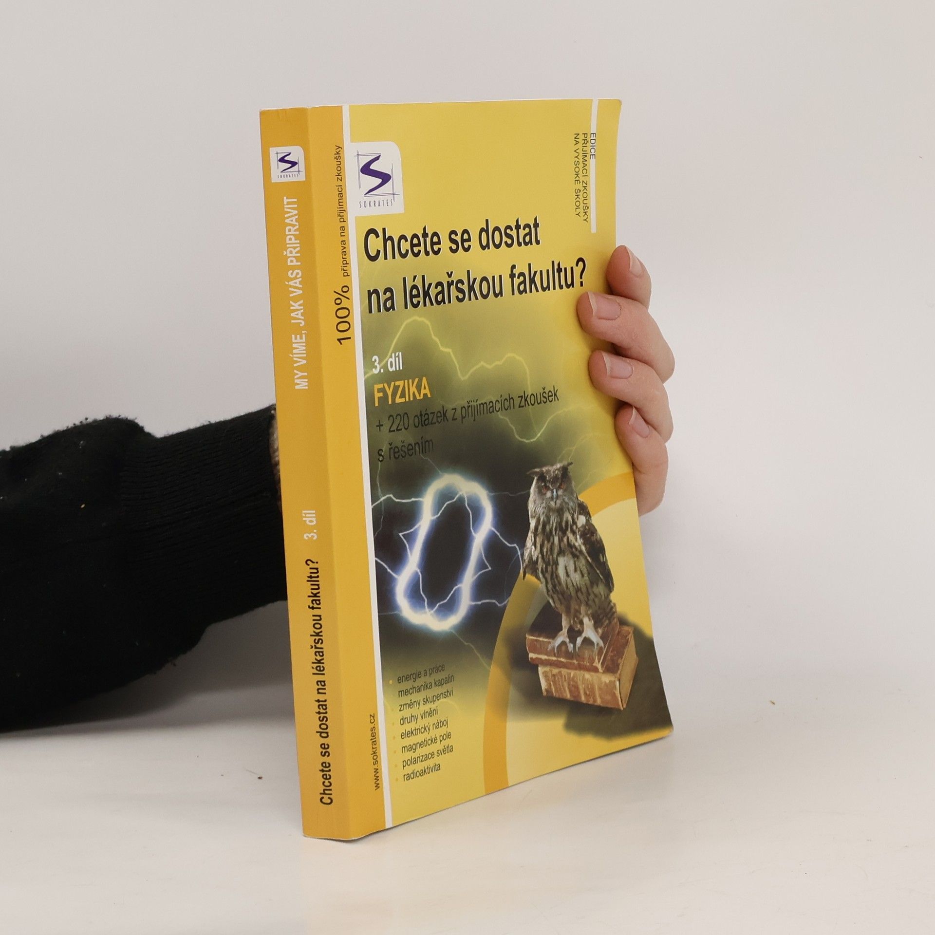 Kniha je jedinečnou pomůckou určenou uchazečům o studium na lékařských fakultách, obsahuje teoretické shrnutí problematiky +220 testových otázek z minulých přijímacích zkoušek s řešením, a to z fyziky. Je určena pro adepty na lékařskou fakultu UK v Praze, Lékařskou fakultu MU v Brně, Lékařskou fakultu UP v Olomouci, Veterinární a farmaceutickou univerzitu Brno a ostatní VŠ tohoto směru. ktuální pro rok 2007!!! Publikaci je vhodné zkombinovat s vysvětlením problematiky v dalších dílech.