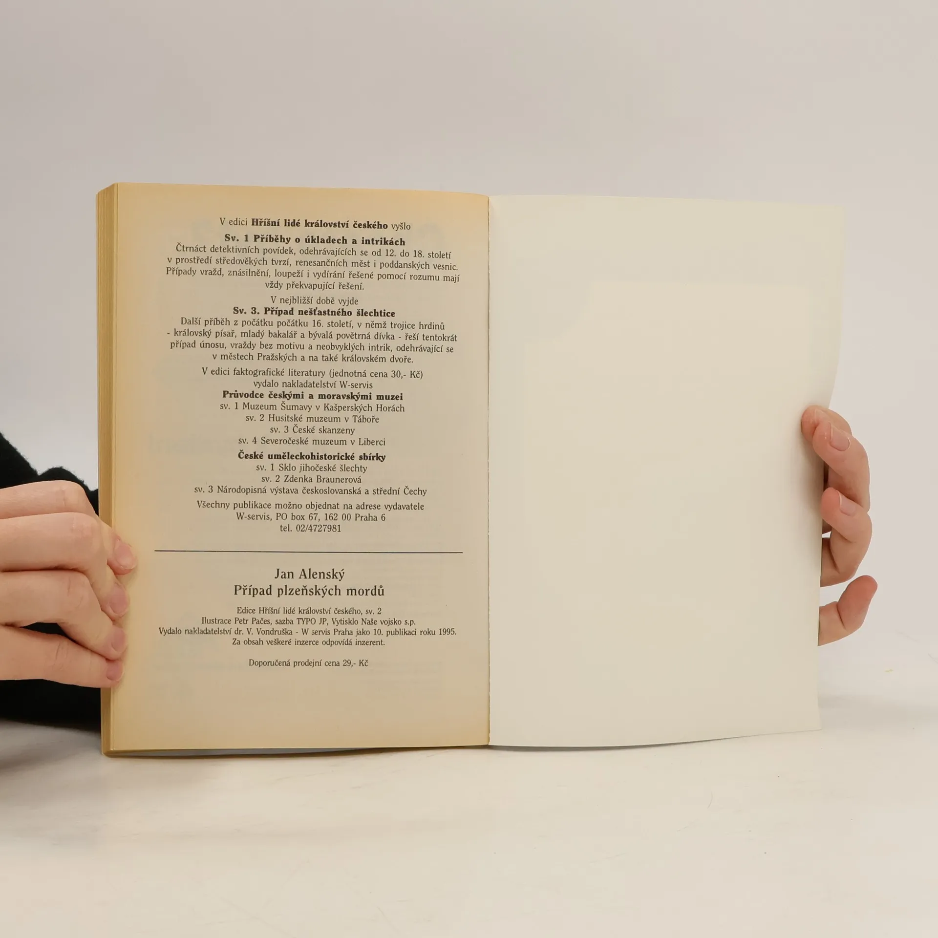 Edice Hříšní lidé Království českého přináší detektivní příběhy, odehrávající se v dávno minulých dobách. Protože ve středověku neexistovala ani policie, ani metody moderní kriminalistiky, je hledání pachatelů vždy založeno především na rozumu a někdy i na náhodě. Případplzeňských mordů je prvý z řady detektivních příběhů, odehrávajících se na počátku 16. století. Neobvyklá trojice detektivů- královský písař, mladý bakalář a bývalá povětrná dívka- řeší společně tajemné a neobvyklé zločiny. Tentokrát jde o sérii vražd a zpronevěru v královském městě Plzni.
