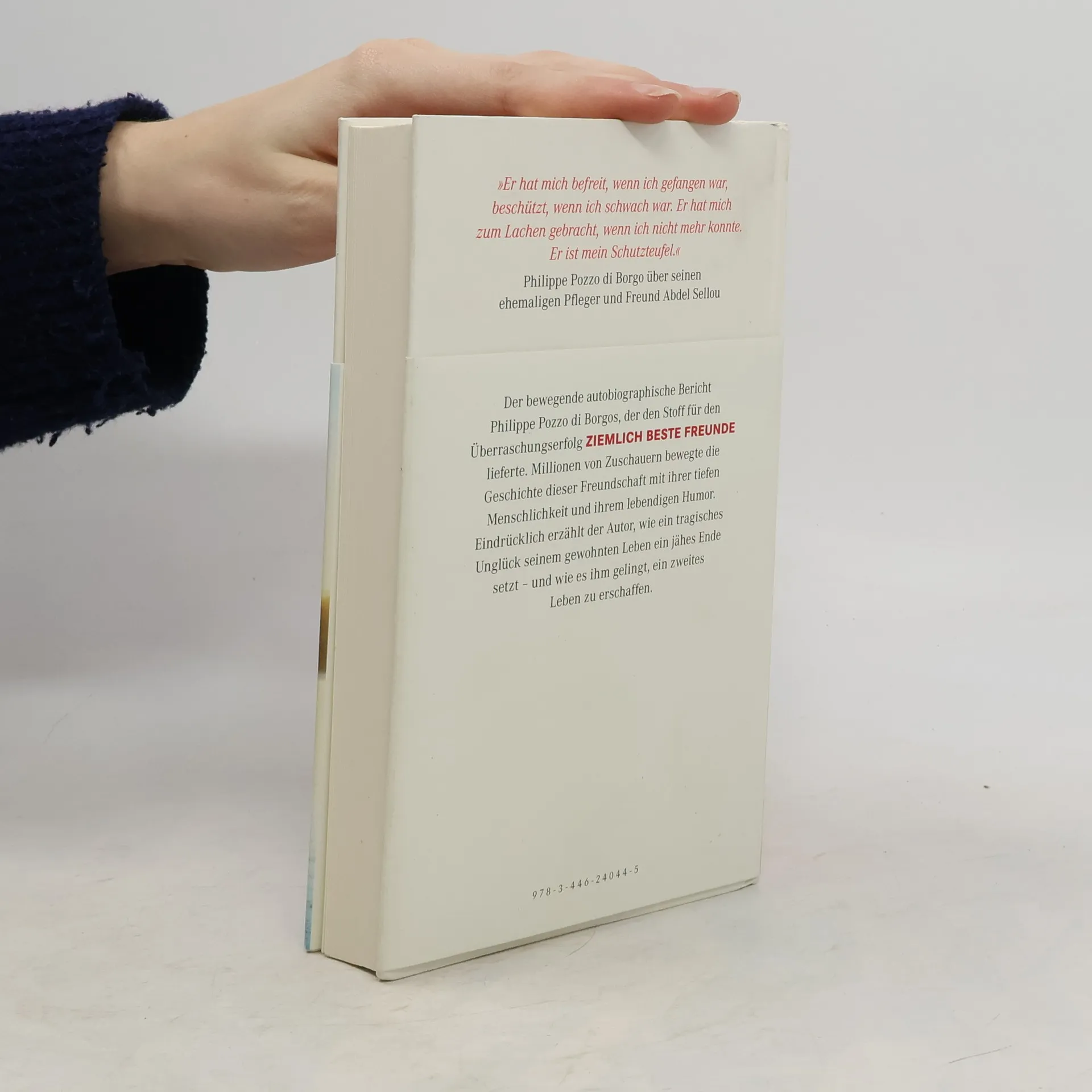 Der bewegende autobiographische Bericht Philippe Pozzo di Borgos, der den Stoff für einen sensationellen Kinoerfolg lieferte. Der Autor ist Geschäftsführer der Firma Champagnes Pommery, als er mit dem Gleitschirm abstürzt und querschnittsgelähmt bleibt. Er ist 42 Jahre alt und braucht einen Intensivpfleger. Der arbeitslose Ex-Sträfling Abdel kriegt den Job. Mit seiner lebensfrohen und authentischen Art wird Abdel zu Philippes „Schutzteufel“. Zehn Jahre lang pflegt er ihn und gibt ihm die Lebensfreude zurück. Von O. Nakache und E. Toledano verfilmt, ist diese Geschichte einer Freundschaft, die auf Respekt und Toleranz gründet, zu einem der erfolgreichsten französischen Filme aller Zeiten geworden.