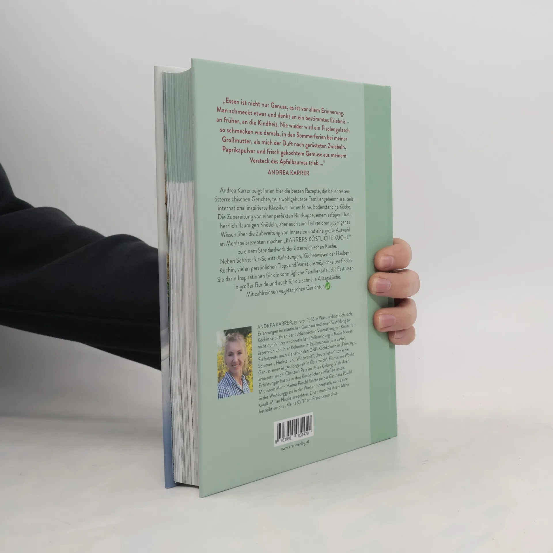Essen ist nicht nur Genuss, es ist vor allem Erinnerung. Man schmeckt etwas und denkt an ein bestimmtes Erlebnis an früher, an die Kindheit. Nie wieder wird ein Fisolengulasch so schmecken wie damals, in den Sommerferien bei meiner Großmutter, als mich der Duft nach gerösteten Zwiebeln, Paprikapulver und frisch gekochtem Gemüse aus meinem Versteck des Apfelbaumes trieb ... Andrea Karrer zeigt Ihnen hier die besten Rezepte, die beliebtesten österreichischen Gerichte, teils wohlgehütete Familiengeheimnisse, teils international inspirierte Klassiker: immer feine, bodenständige Küche. Die Zubereitung von einer perfekten Rindssuppe, einem saftigen Bratl, herrlich flaumigen Knödeln, aber auch zum Teil verloren gegangenes Wissen über die Zubereitung von Innereien und eine große Auswahl an Mehlspeisrezepten machen „Karrers köstliche Küche“ zu einem Standardwerk der österreichischen Küche. Neben Schritt-für-Schritt-Anleitungen, Küchenwissen der Haubenköchin, vielen persönlichen Tipps und Variationsmöglichkeiten finden Sie darin Inspirationen für die sonntägliche Familientafel, das Festessen in großer Runde und auch für die schnelle Alltagsküche.