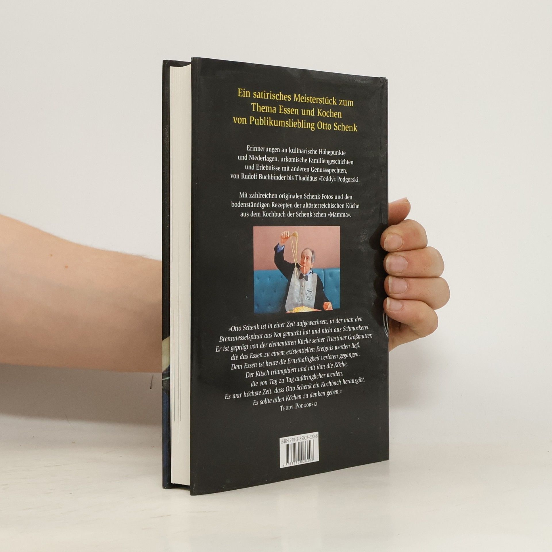 „Dieses Buch ist kein Kochbuch, ich kann eigentlich gar nicht kochen. Sogar das Essen fällt mir schwer, was leider nicht zur schlanken Linie führt, da man bei schlechtem Essen immer wieder solange hofft, doch noch auf etwas Gutes zu stoßen und so die verbotenen Kalorien im überreichem Maße einbringt. Da ich aber nicht wirklich koche, gehört Kochen für mich zu den aufregendsten Tätigkeiten. Jegliche Sorgen konzentrieren sich auf das Reindl, das Anbrennen, das Rösten, auf die Gerüche, die Gabel, die das Fleisch prüft, auf das Kosten, das Herrichten und so weiter. Vielleicht glücken mir dadurch in Sternstunden erfolgreiche Speisen“. Ein satirisches Meisterstück zum Thema Essen: Otto Schenk gelingen in diesem neuen Buch köstliche Satiren, urkomische Erlebnisse mit anderen Genussspechten von Teddy Podgorsky bis Rudolf Buchbinder, Geschichten seiner Kindheit, garniert mit zahlreichen bodenständigen Rezepten. Es sind literarische Gustostücke zum Thema Essen und Kochen, deren „sporadische Rezepte Rettungsringe sein sollen, die verzweifelten Essern beim Schwimmen durch das Meer des Ungeschmacks hie und da zum Überleben gereicht werden können“. Ein Pointenfeuerwerk, das die Fans des genialen Schauspielers auch vom humoristischen Schriftsteller überzeugen wird.