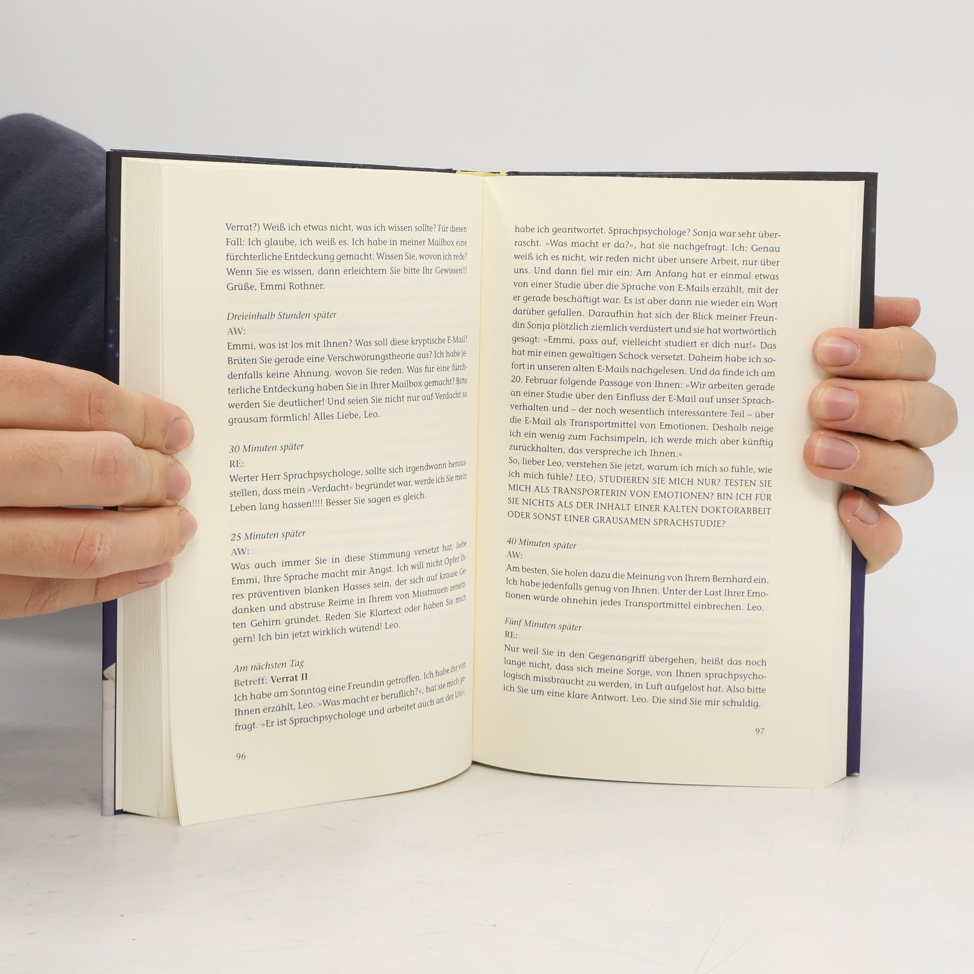 Gibt es in einer vom Alltag besetzten Wirklichkeit einen besser geschützten Raum für gelebte Sehnsüchte als den virtuellen? Bei Leo Leike landen irrtümlich E-Mails einer ihm unbekannten Emmi Rothner. Aus Höflichkeit antwortet er ihr. Und weil sich Emmi von ihm angezogen fühlt, schreibt sie zurück. Bald scheint es nur noch eine Frage der Zeit zu sein, wann es zum ersten persönlichen Treffen kommt, aber diese Frage wühlt beide so sehr auf, dass sie die Antwort lieber noch eine Weile hinauszögern. Außerdem ist Emmi glücklich verheiratet. Und Leo verdaut gerade eine gescheiterte Beziehung. Und überhaupt: Werden die gesendeten, empfangenen und gespeicherten Liebesgefühle einer Begegnung standhalten? Und was, wenn ja?