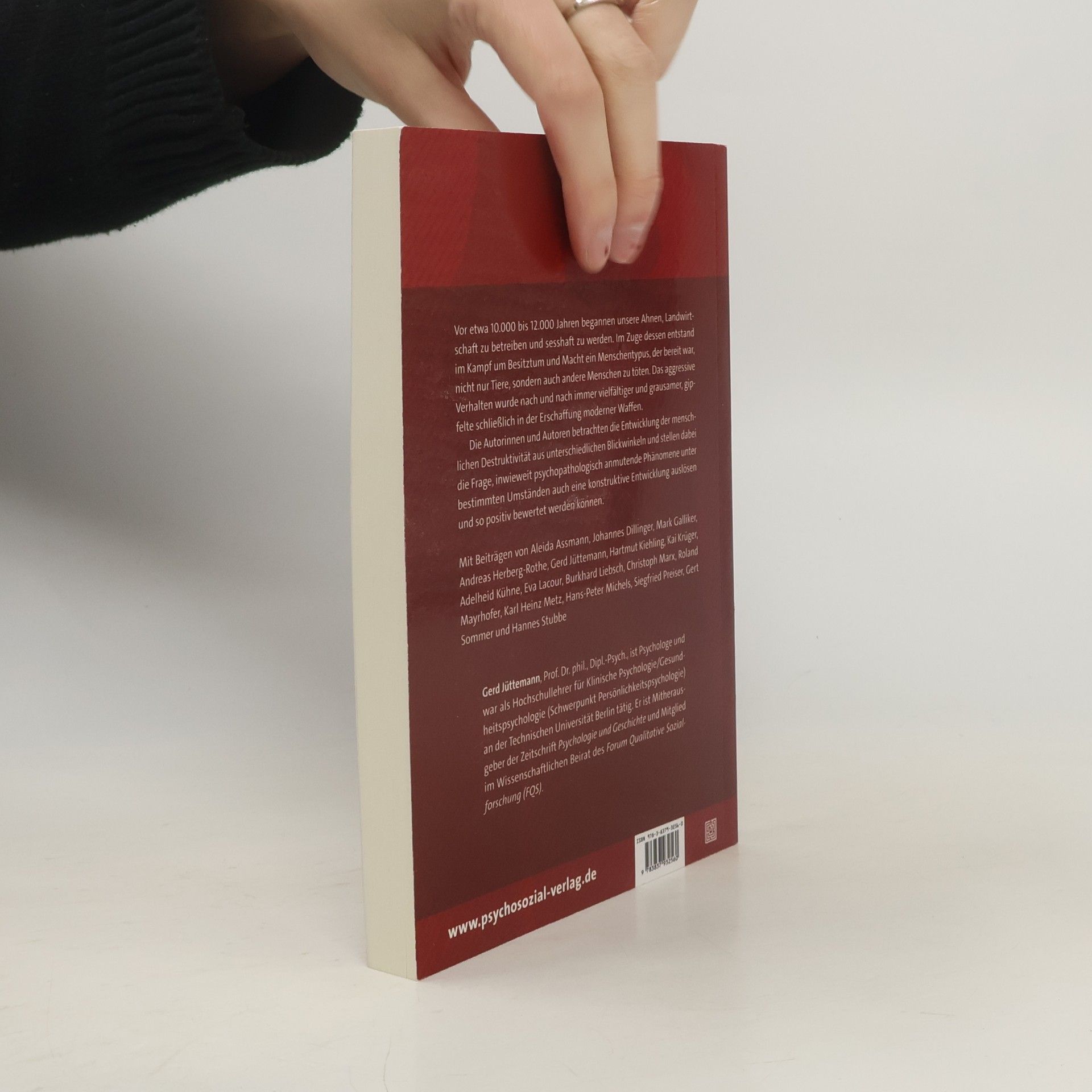 Vor etwa 10.000 bis 12.000 Jahren begannen unsere Ahnen, Landwirtschaft zu betreiben und sesshaft zu werden. Im Zuge dessen entstand im Kampf um Besitztum und Macht ein Menschentypus, der bereit war, nicht nur Tiere, sondern auch andere Menschen zu töten. Das aggressive Verhalten wurde nach und nach immer vielfältiger und grausamer, gipfelte schließlich in der Erschaffung moderner Waffen. Die Autorinnen und Autoren betrachten die Entwicklung der menschlichen Destruktivität aus unterschiedlichen Blickwinkeln und stellen dabei die Frage, inwieweit psychopathologisch anmutende Phänomene unter bestimmten Umständen auch eine konstruktive Entwicklung auslösen und so positiv bewertet werden können. Mit Beiträgen von Aleida Assmann, Johannes Dillinger, Mark Galliker, Andreas Herberg-Rothe, Gerd Jüttemann, Hartmut Kiehling, Kai Krüger, Adelheid Kühne, Eva Lacour, Burkhard Liebsch, Christoph Marx, Roland Mayrhofer, Karl Heinz Metz, Hans-Peter Michels, Siegfried Preiser, Gert Sommer und Hannes Stubbe