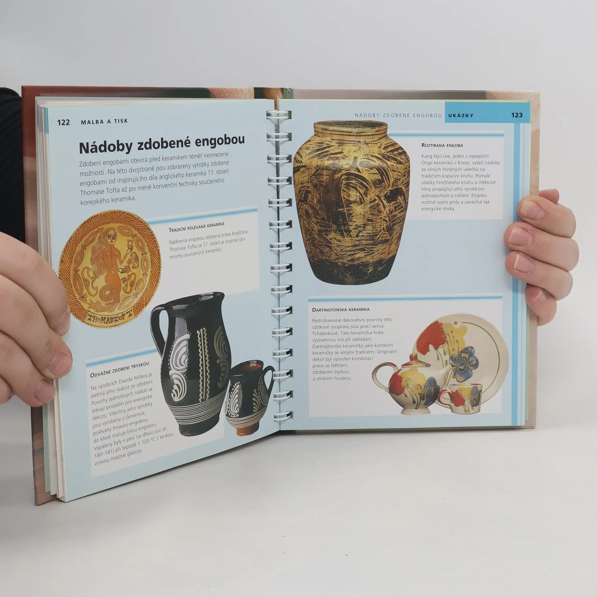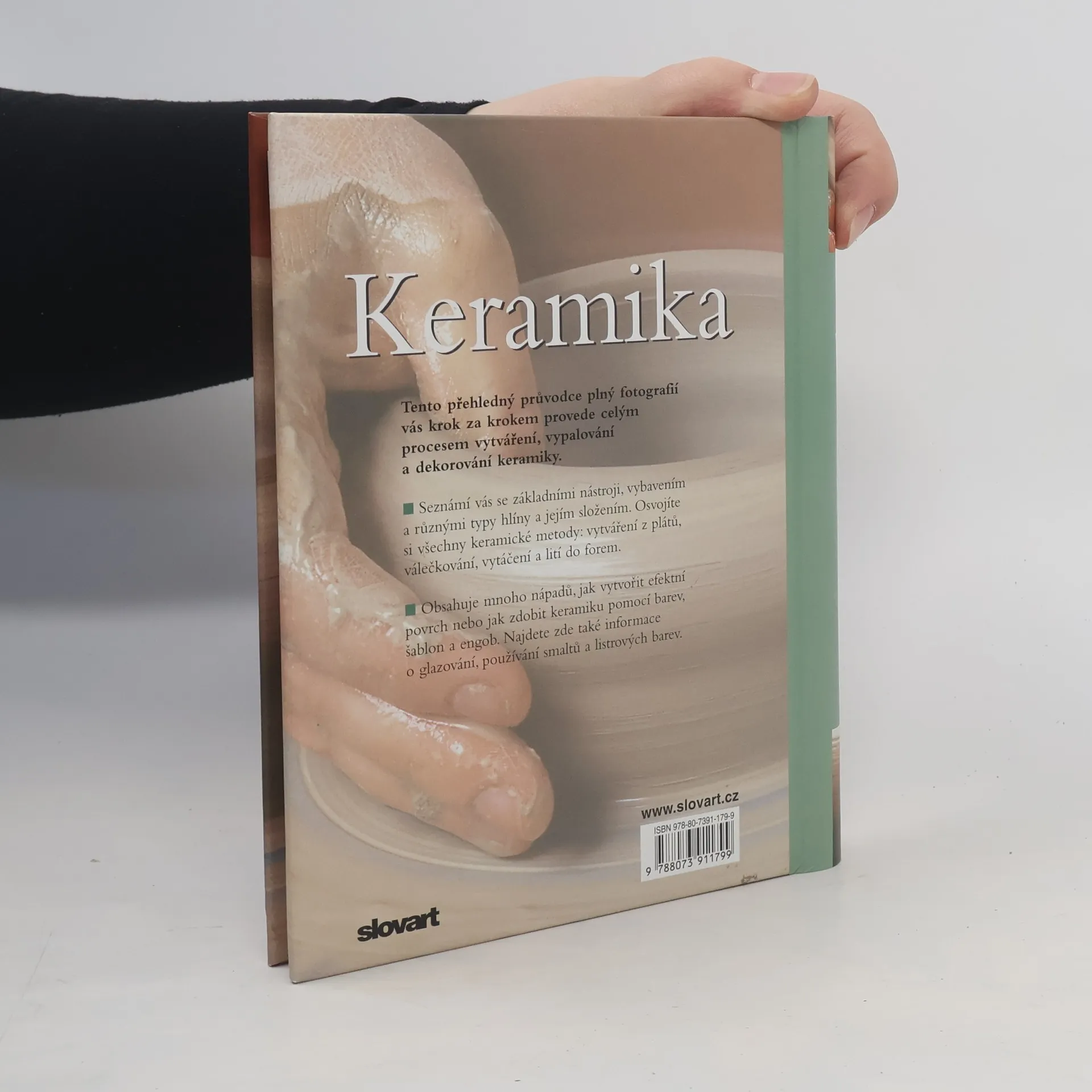 Přehledný průvodce plný fotografií provede celým procesem vytváření, vypalování a dekorování keramických předmětů. Základní nástroje, vybavení a různé typy hlíny a jejich složení. Názorně předvádí všechny keramické metody: vytváření z plátů, válečkování, vytáčení a lití do forem. Obsahuje mnoho nápadů, jak vytvořit efektní povrch nebo jak zdobit keramiku pomocí barev, šablon a engob. Informace o glazování, používání smaltů a listrových barev.