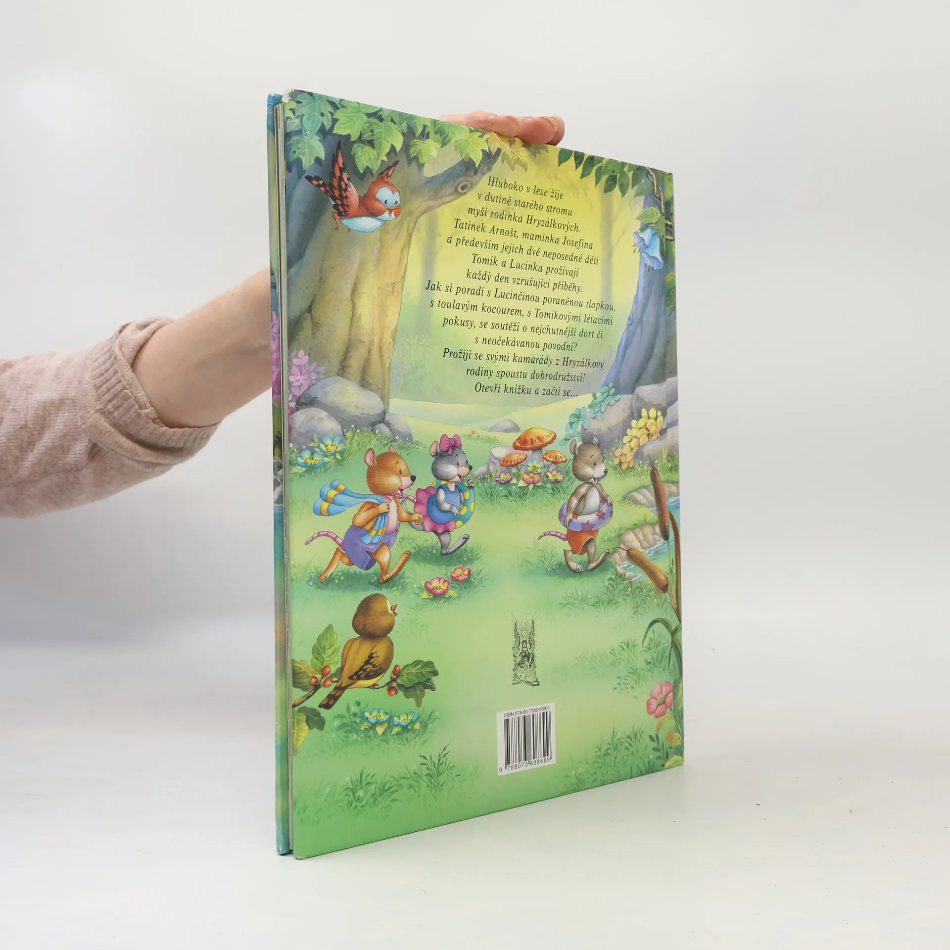 Hluboko v lese žije v dutině starého stromu myší rodinka Hryzálkových - tatínek Arnošt, maminka Josefína a především jejich dvě neposedné děti Tomík a Lucinka. Každý jejich den je plný vzrušujících příběhů a vaše děti je nyní mohou díky této krásně ilustrované knížce prožívat spolu s nimi. Příběhy myší rodinky pro nejmenší