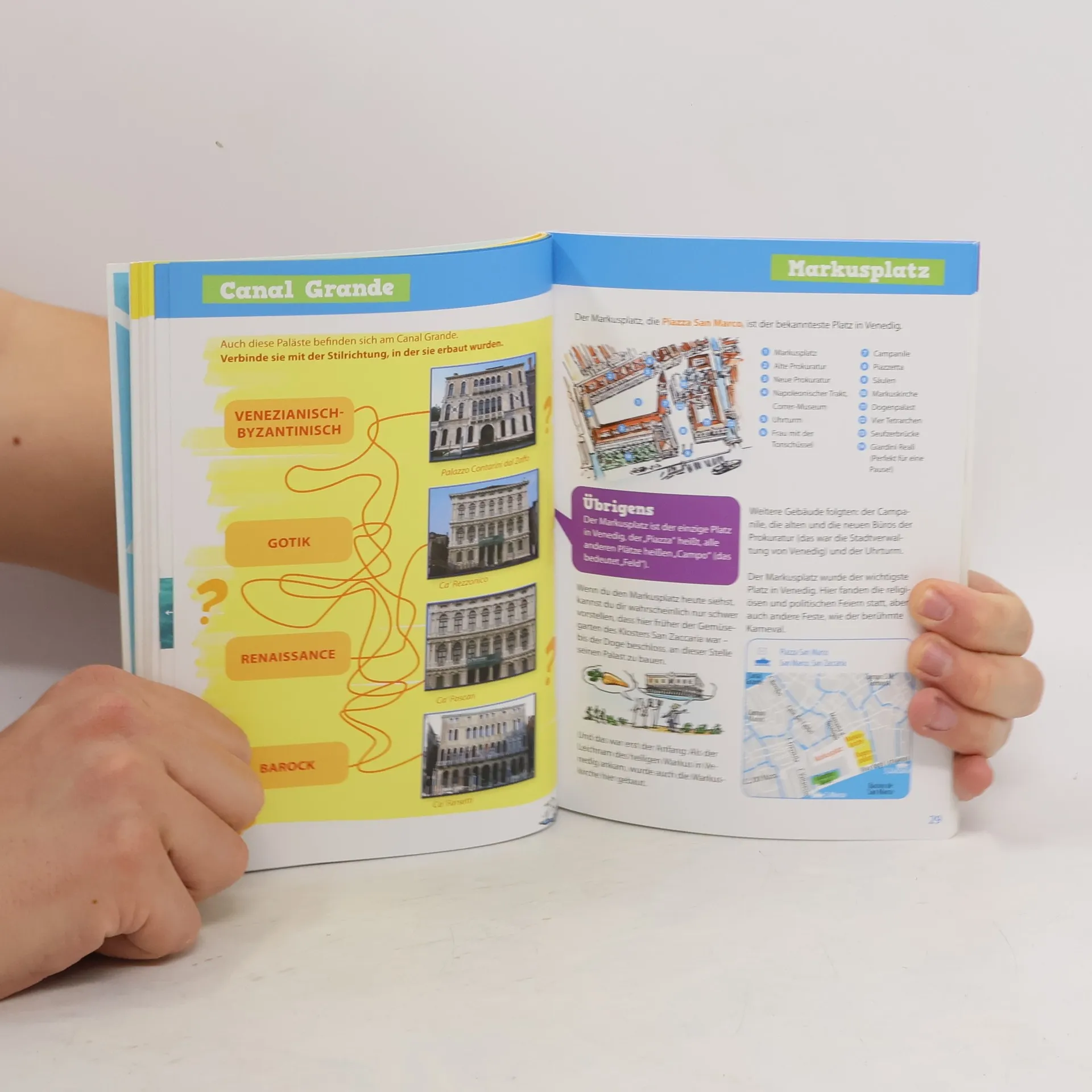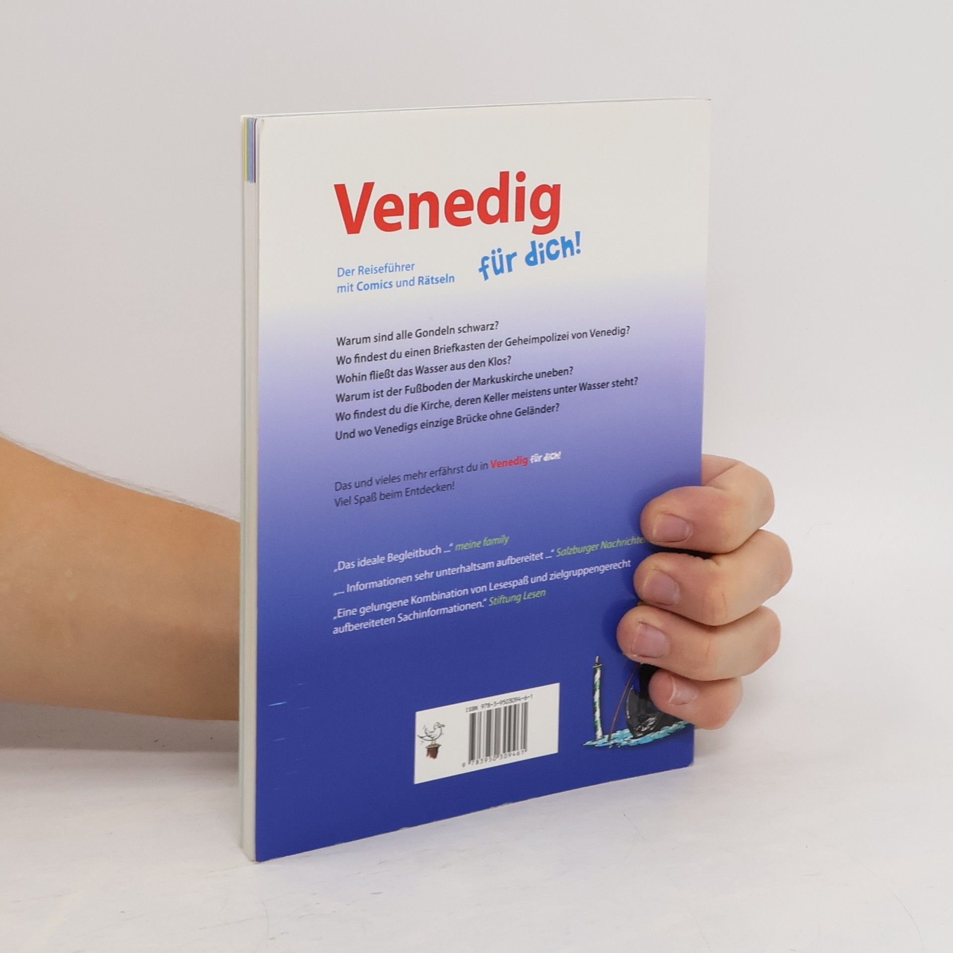 Mit Comics und Rätseln führt dich „Venedig für dich!“ durch eine der coolsten Städte der Welt. Der Reiseführer zeigt dir alle Highlights: den Canal Grande, den Markusplatz mit der Markuskirche, dem Dogenpalast und dem Campanile, die Rialtobrücke und das Ghetto, Murano, Burano und noch viel mehr. Außerdem erfährst du jede Menge Insider-Infos, zum Beispiel: Warum sind alle Gondeln schwarz? Wo findest du einen Briefkasten der Geheimpolizei von Venedig? Wohin fließt das Wasser aus den Klos? Warum ist der Fußboden der Markuskirche uneben? Wo findest du die Kirche, deren Keller meistens unter Wasser steht? Und wo Venedigs einzige Brücke ohne Geländer? Übrigens: Weil Warten öd ist, findest du auch Tipps, wie du so manche Warteschlange vermeiden kannst. Viel Spaß beim Entdecken!