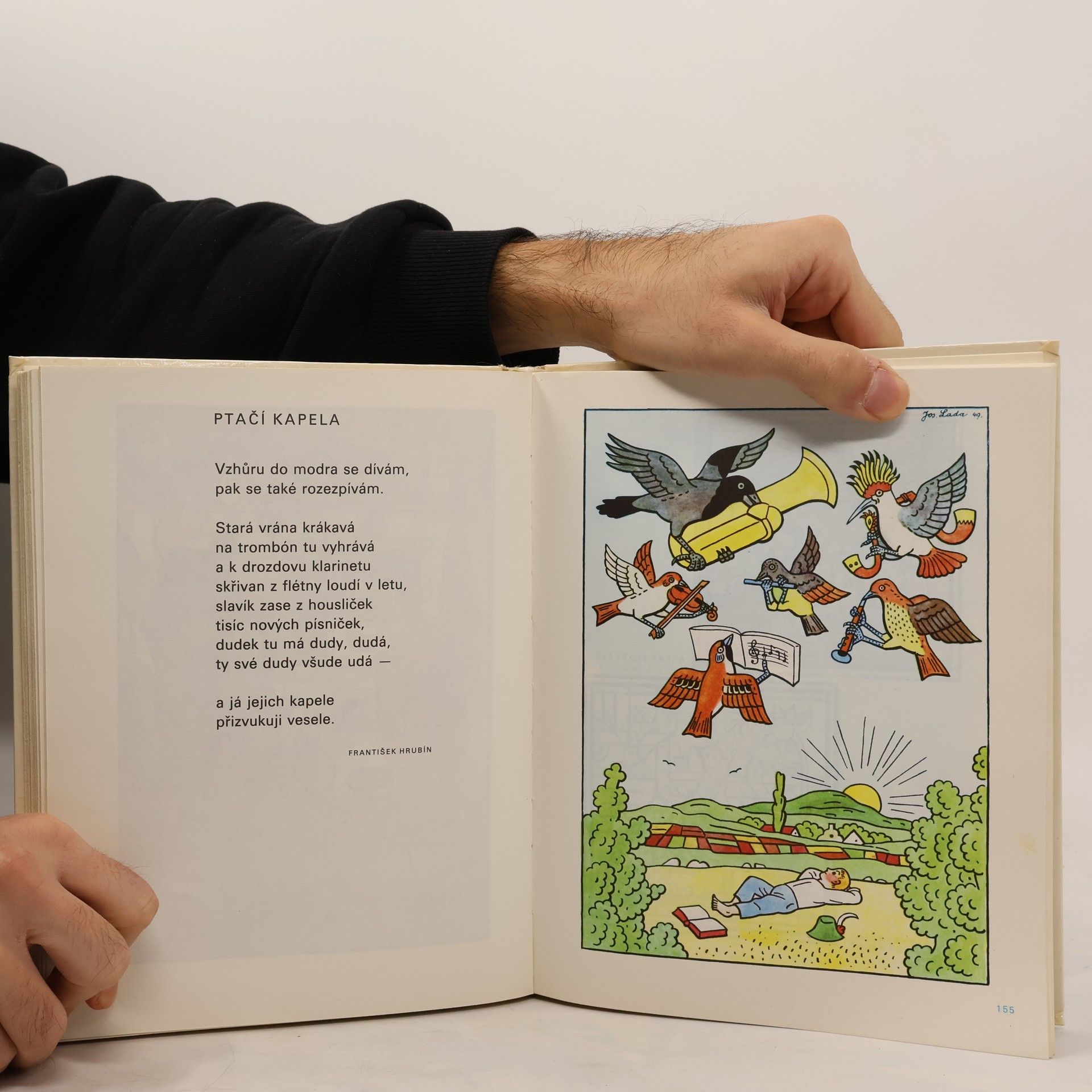 Lidová říkadla, bajky, autorovy vzpomínky na dětství strávené v malebné středočeské vesničce Hrusice, které doplňují verše J. Seiferta a F. Hrubína. A především spousta kouzelných Ladových obrázků s neopakovatelnou atmosférou. Uspořádal a doslov napsal Jan Vrána a D. M. Pavlíček.Graficky upravil Jan Žbánek. 80000 výt.