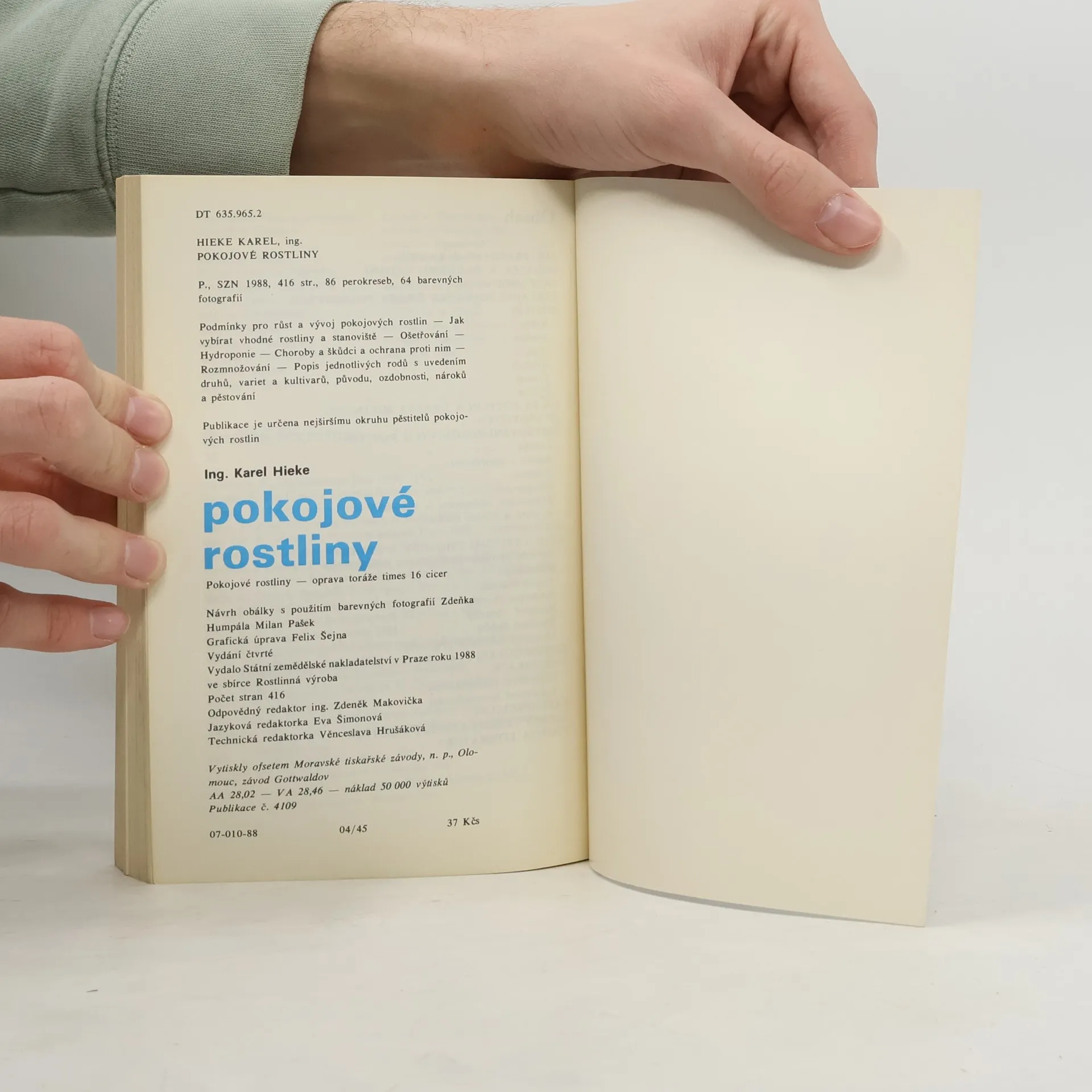 Kniha rozdělena do dvou částí - obecnou s popisy, zalévání, hnojení, úpravy a podmínky pěstování. Choroby a škůdci. Část speciální s přehledem druhů, popisy a názvy - latin - české řazeno abecedně. 4. doplněné vydání.