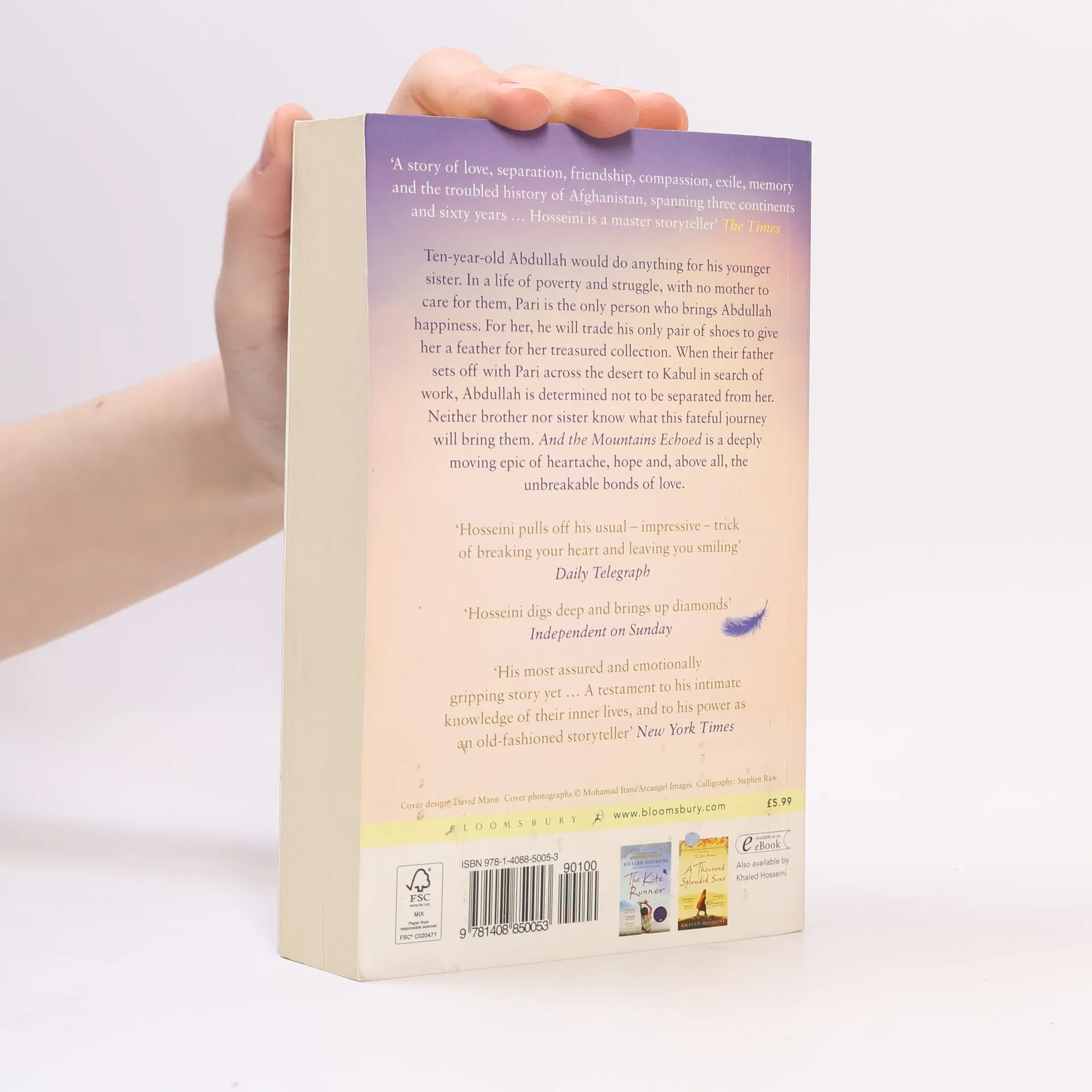 So, then. You want a story and I will tell you one... Afghanistan, 1952. Abdullah and his sister Pari live in the small village of Shadbagh. To Abdullah, Pari, as beautiful and sweet-natured as the fairy for which she was named, is everything. More like a parent than a brother, Abdullah will do anything for her, even trading his only pair of shoes for a feather for her treasured collection. Each night they sleep together in their cot, their skulls touching, their limbs tangled. One day the siblings journey across the desert to Kabul with their father. Pari and Abdullah have no sense of the fate that awaits them there, for the event which unfolds will tear their lives apart; sometimes a finger must be cut to save the hand. Crossing generations and continents, moving from Kabul, to Paris, to San Francisco, to the Greek island of Tinos, Khaled Hosseini writes about the bonds that define us and shape our lives, and how the choices we make resonate through history.