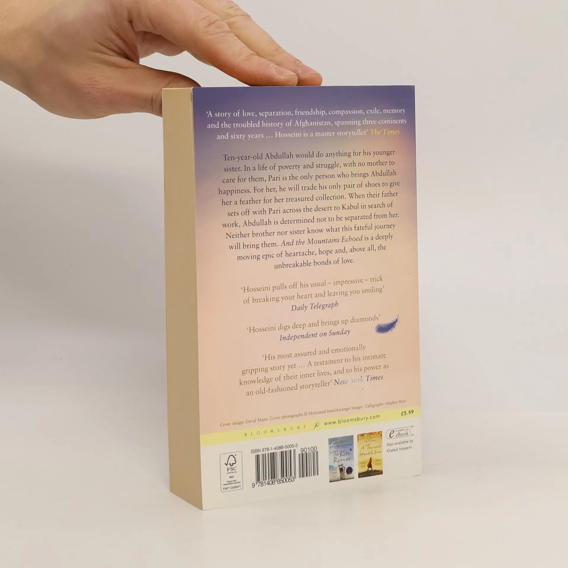 So, then. You want a story and I will tell you one... Afghanistan, 1952. Abdullah and his sister Pari live in the small village of Shadbagh. To Abdullah, Pari, as beautiful and sweet-natured as the fairy for which she was named, is everything. More like a parent than a brother, Abdullah will do anything for her, even trading his only pair of shoes for a feather for her treasured collection. Each night they sleep together in their cot, their skulls touching, their limbs tangled. One day the siblings journey across the desert to Kabul with their father. Pari and Abdullah have no sense of the fate that awaits them there, for the event which unfolds will tear their lives apart; sometimes a finger must be cut to save the hand. Crossing generations and continents, moving from Kabul, to Paris, to San Francisco, to the Greek island of Tinos, Khaled Hosseini writes about the bonds that define us and shape our lives, and how the choices we make resonate through history.