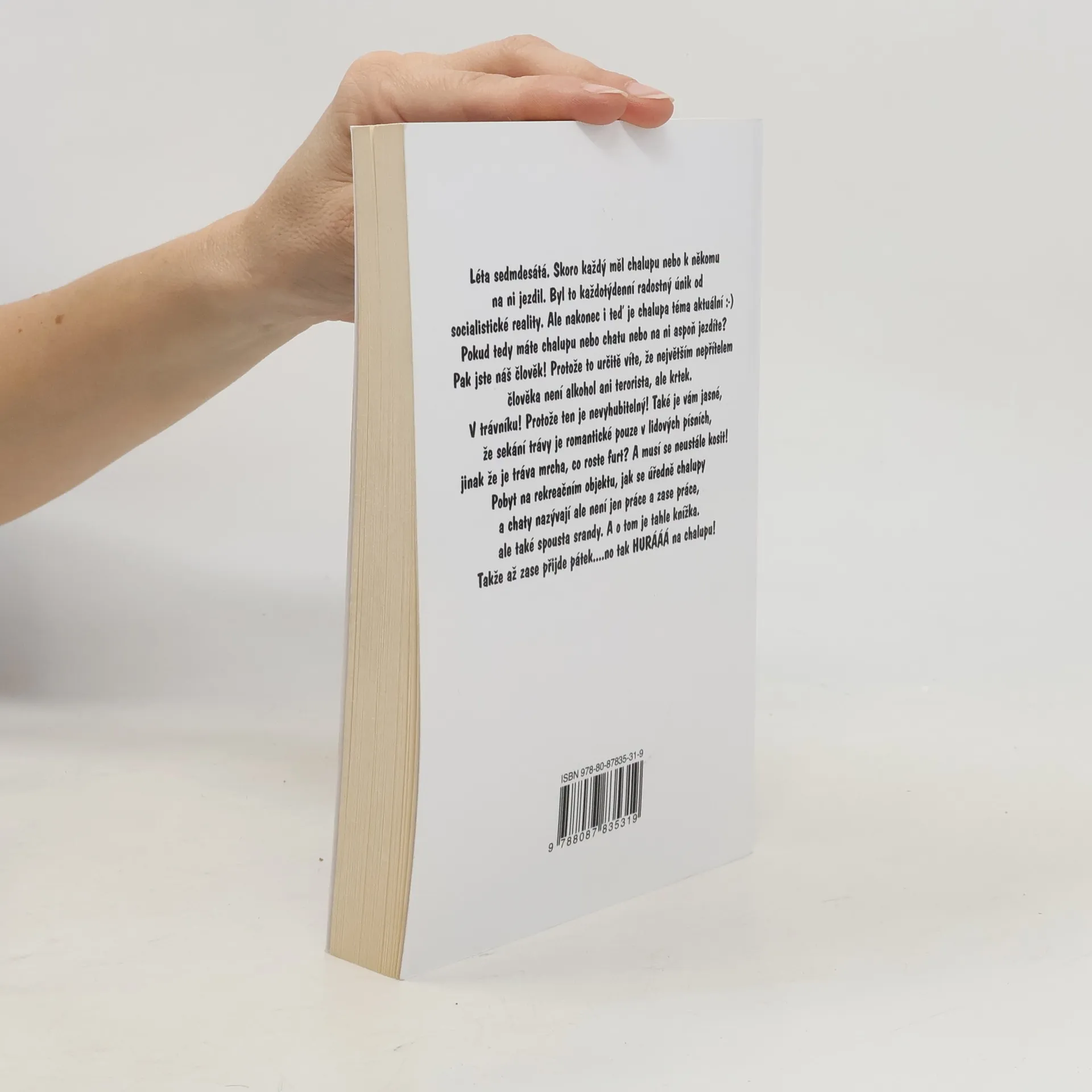 Hurááá na chalupu - Václav Vlk. Léta sedmdesátá. Každý měl chalupu, bylo to skvělé vyžití po týdnu v socialistické realitě. Ale nakonec i teď je chalupa téma aktuální:-) Pokud tedy máte chalupu nebo chatu nebo na ni aspoň jezdíte? Pak jste náš člověk! Protože to určitě víte, že největším nepřítelem člověka není alkohol ani terorista, ale krtek. V trávníku! Protože ten je nevyhubitelný! Také je vám jasné, že sekání trávy je romantické pouze v lidových písních, jinak že je tráva mrcha, co roste furt? A musí se neustále kosit! Pobyt na rekreačním objektu, jak se úředně chalupy a chaty nazývají ale není jen práce a zase práce, ale také spousta srandy. A o tom je tahle knížka.