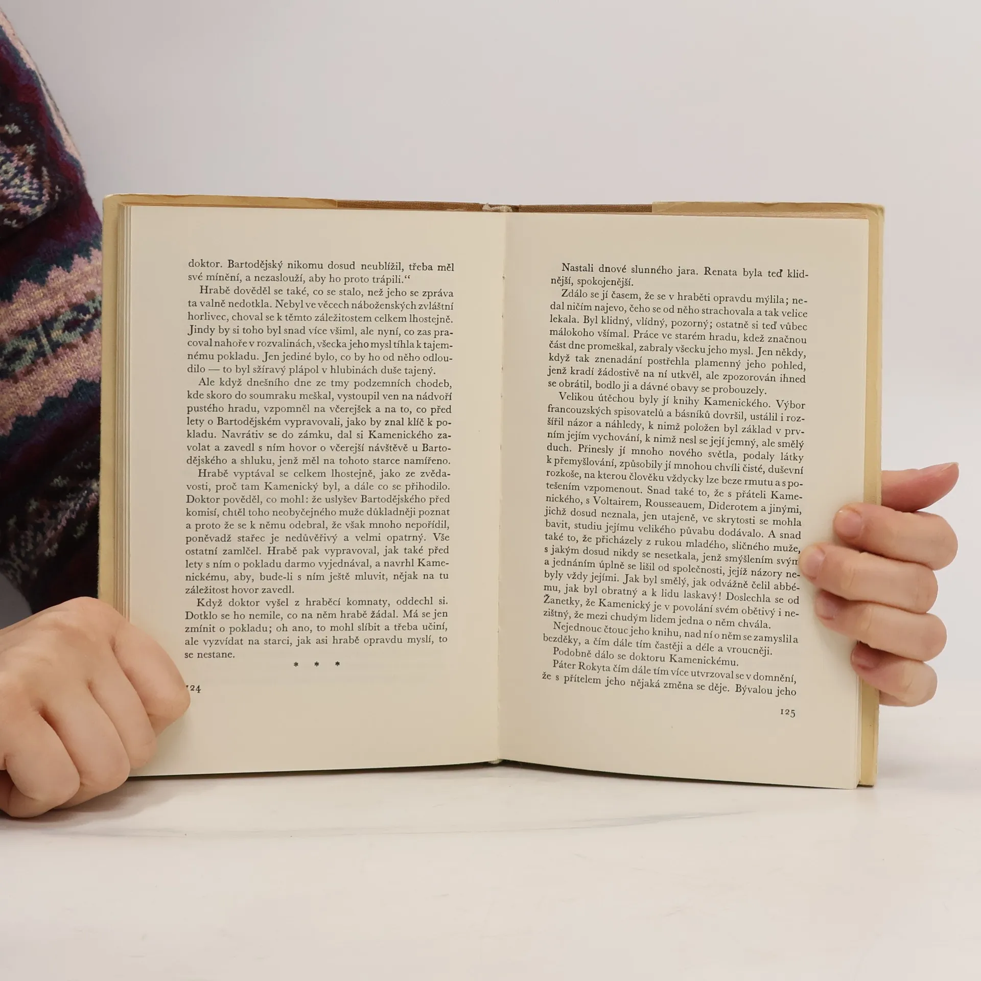 Odehrává se v rokokovém zámku pod hradem Potštejnem r. 1781. Hrabě Harbuval-Chamaré, pán na Potštejně, hledá na základě lidových pověstí ve zříceninách hradu poklad, objeví však na rozhodném místě sklepení, které bylo skrýší a tajnou modlitebnou evang. Bratří, a najde v něm poklad helvetský, šestidílnou bibli Kralickou a bratrský kalich. Evangelické emigranty, které náhodou ve stejný okamžik přistihne ve skrýši exjesuita P. Steydl, dává hrabě uvěznit, zachrání je však právě vydaný Toleranční patent. Příběhy jednotlivých postav románu jsou vylíčeny tak, aby ukázaly rozdíl mezi tmářstvím, náboženskou nesnášenlivostí a fanatismem vesničanů, podléhajících vlivu jesuity Steydla, a mezi osobní statečností a přemýšlivostí lidových tajných nekatolíků, kterých se zastává osvícenec MUDr. Kamenický. Hrabě Chamaré je představitelem odumírající šlechty.