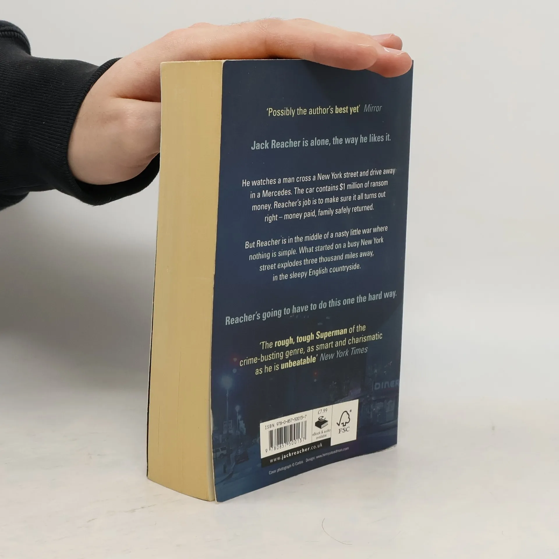 In Lee Child's astonishing new thriller, ex-military cop Reacher sees more than most people would, and because of that, he's thrust into an explosive situation that's about to blow up in his face. For the only way to find the truth, and save two innocent lives, is to do it the way Jack Reacher does it best: the hard way. Jack Reacher was alone, the way he liked it, soaking up the hot, electric New York City night, watching a man cross the street to a parked Mercedes and drive it away. The car contained one million dollars in ransom money. And Edward Lane, the man who paid it, will pay even more to get his family back. Lane runs a highly illegal soldiers for hire operation. He will use any amount of money and any tool to find his beautiful wife and child. And then he'll turn Jack Reacher loose with a vengeance because Reacher is the best man hunter in the world. On the trail of a vicious kidnapper, Reacher is learning the chilling secrets of his employer's past, and of a horrific drama in the heart of a nasty little war. He's beginning to realize that Edward Lane is hiding something. Something dirty. Something big. But Reacher also knows this: he's already in way too deep to stop now.