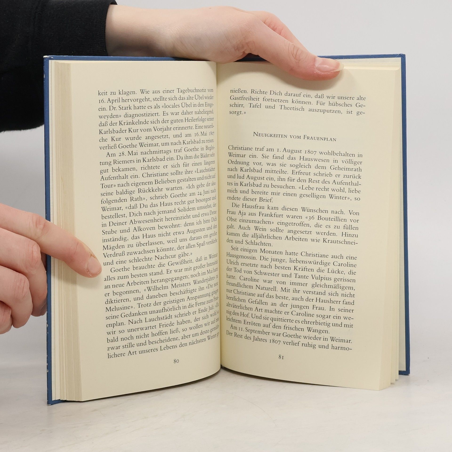 Chris Stadtlaender beschreibt die Beziehung zwischen Christiane Vulpius und Goethe in einer Chronik, die auf alltägliche Gewohnheiten und Ereignisse liebevoll eingeht und die politischen, gesellschaftlichen und literarischen Vorgänge der Zeit lebendig und anschaulich schildert. Beinahe drei Jahrzehnte lang lebten Goethe und Christiane Vulpius zusammen - zunächst unverheiratet, erst seit 1806 als Ehepaar. Christianes Alltag war bestimmt durch die Pflege von Haus und Garten, um die sie sich sorgsam und mit viel Freude kümmerte, während Goethe seinen literarischen und staatsdienstlichen Aufgaben nachging. Er war oft für Tage und Wochen verreist oder hielt sich im benachbarten Jena auf, um in Ruhe arbeiten zu können; sie verbrachte die Tage mit Haushaltsführung und "Herumgräbeln". Während Goethes Abwesenheit schrieben sie sich lange Briefe. Beide fanden in dieser Verbindung, die die Zeitgenossen und auch die Nachwelt mit Befremden zur Kenntnis genommen haben, gegenseitige Entsprec hung und Unterstützung.