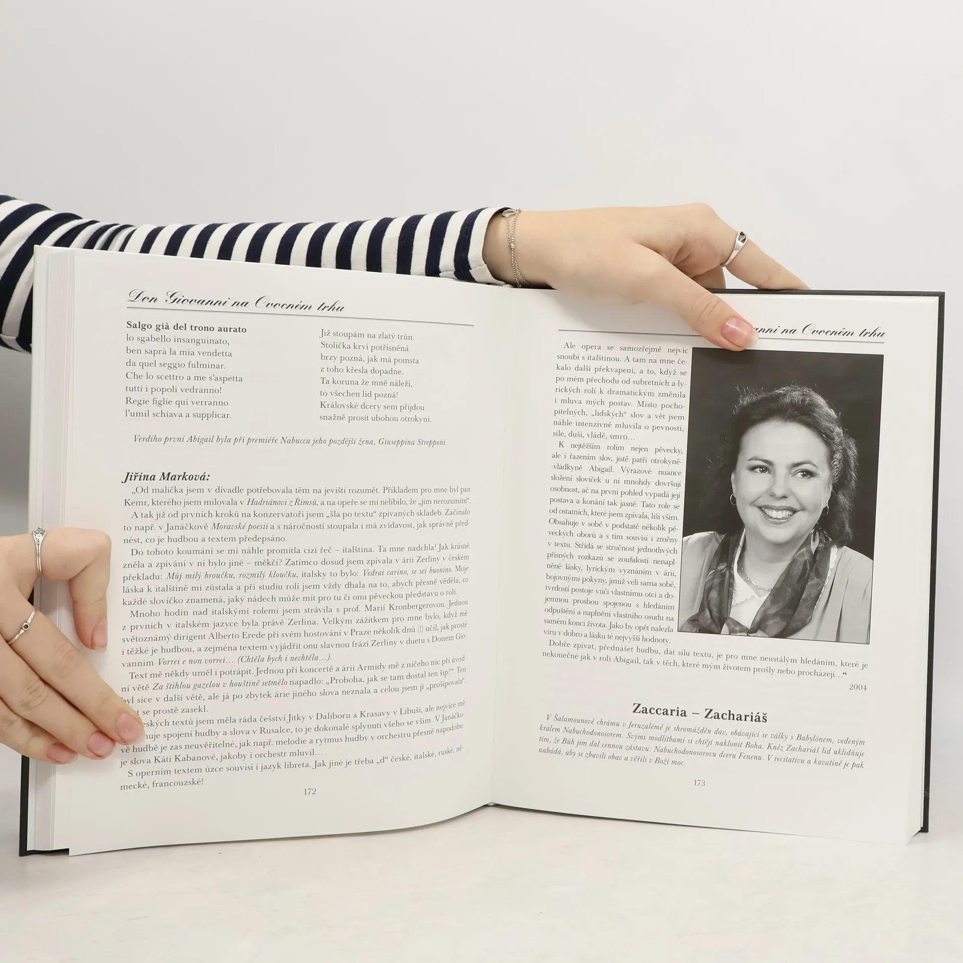 Italská opera si stále udržuje velký zájem milovníků klasické hudby a nachází uplatnění i v kinematografii. Árie v italštině jsou široce dostupné na internetu, avšak posluchačům často chybí porozumění textu. Kniha, určená milovníkům opery, reflektuje skutečnost, že oblíbené italské opery se v posledních desetiletích uvádějí v originále. Představuje známé árie a scény ze čtyř desítek oper, doplněné překladem a kontextem. Kapitoly pokrývají opery od 17. do 20. století a texty jsou uspořádány podle postav. Publikace zahrnuje více než 150 árií a úryvků, které komentují umělci tří generací, od legend jako Václav Zítek a Eva Děpoltová po mezinárodně proslulé pěvce jako Eva Urbanová a Štefan Margita, až po mladší generaci oceněných umělců. Všichni mají zkušenosti z pražských historických operních domů a dalších českých divadel. Kniha obsahuje černobílé fotografie pěvců a stručné životopisy, včetně jejich italských rolí. Tato publikace je ideální pro studenty hudby a zájemce o historii italské opery.